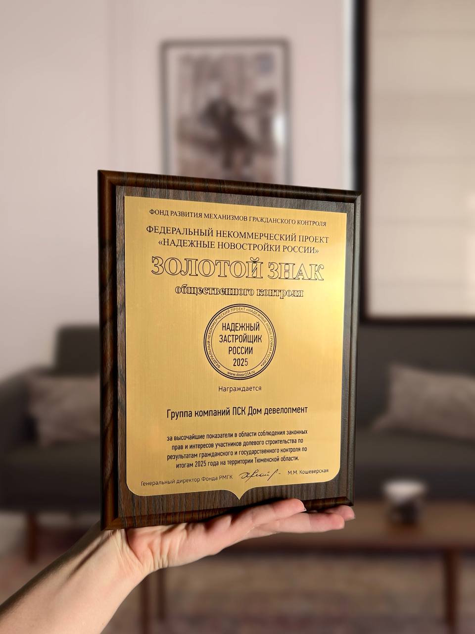 Несколько лет подряд ПСК Дом получает золотой знак «Надёжный застройщик России».