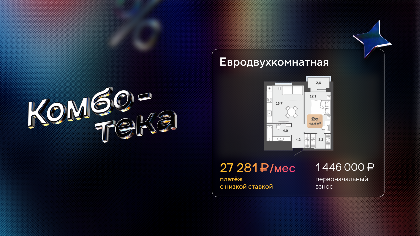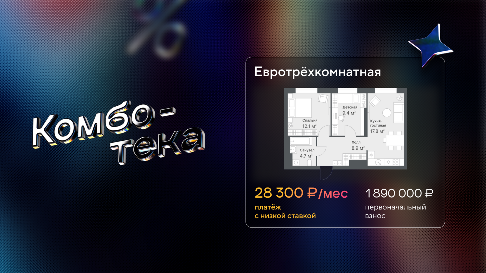 Вторая часть «Чёрной пятницы» — «Комботека». Это покупка квартиры со скидкой до 10% по сниженной ставке 3,9% для семей.