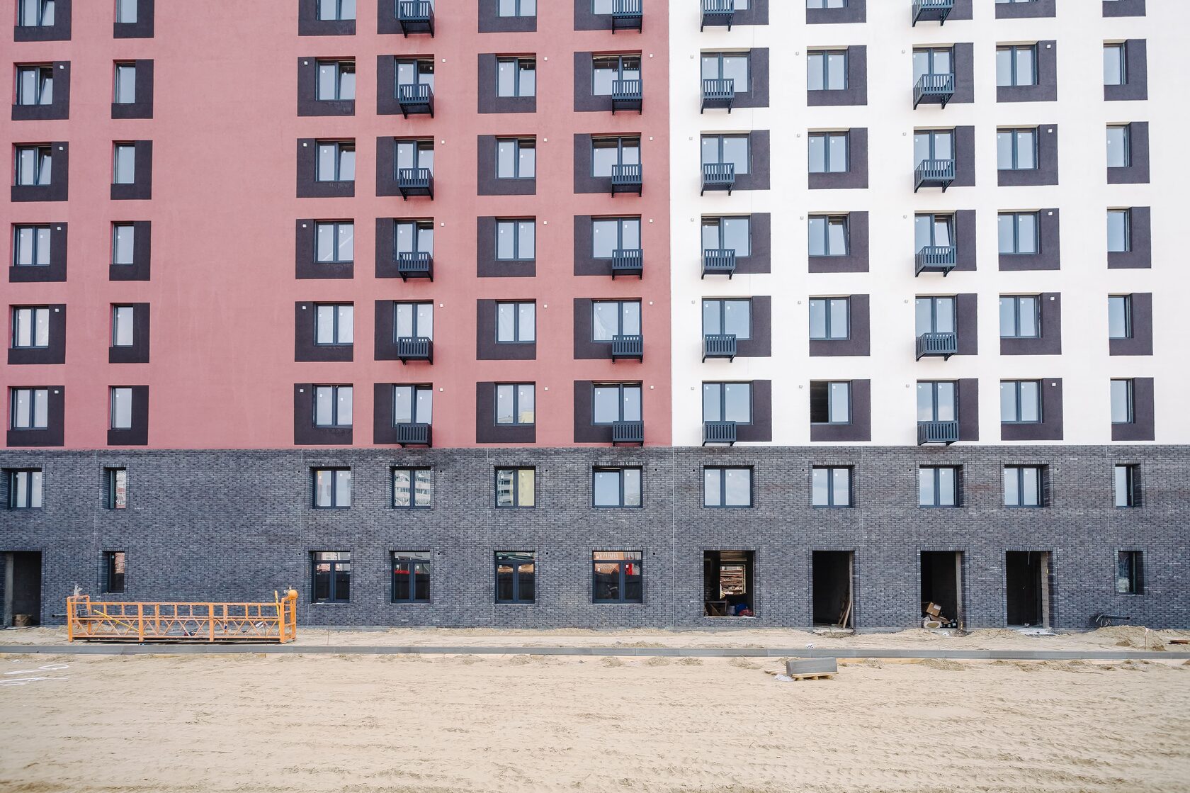 В ГП-1.2 начались фасадные работы. Сейчас внешние стены утепляют плитами из минеральной ваты. В подвале работают сантехники над установкой общедомового оборудования.