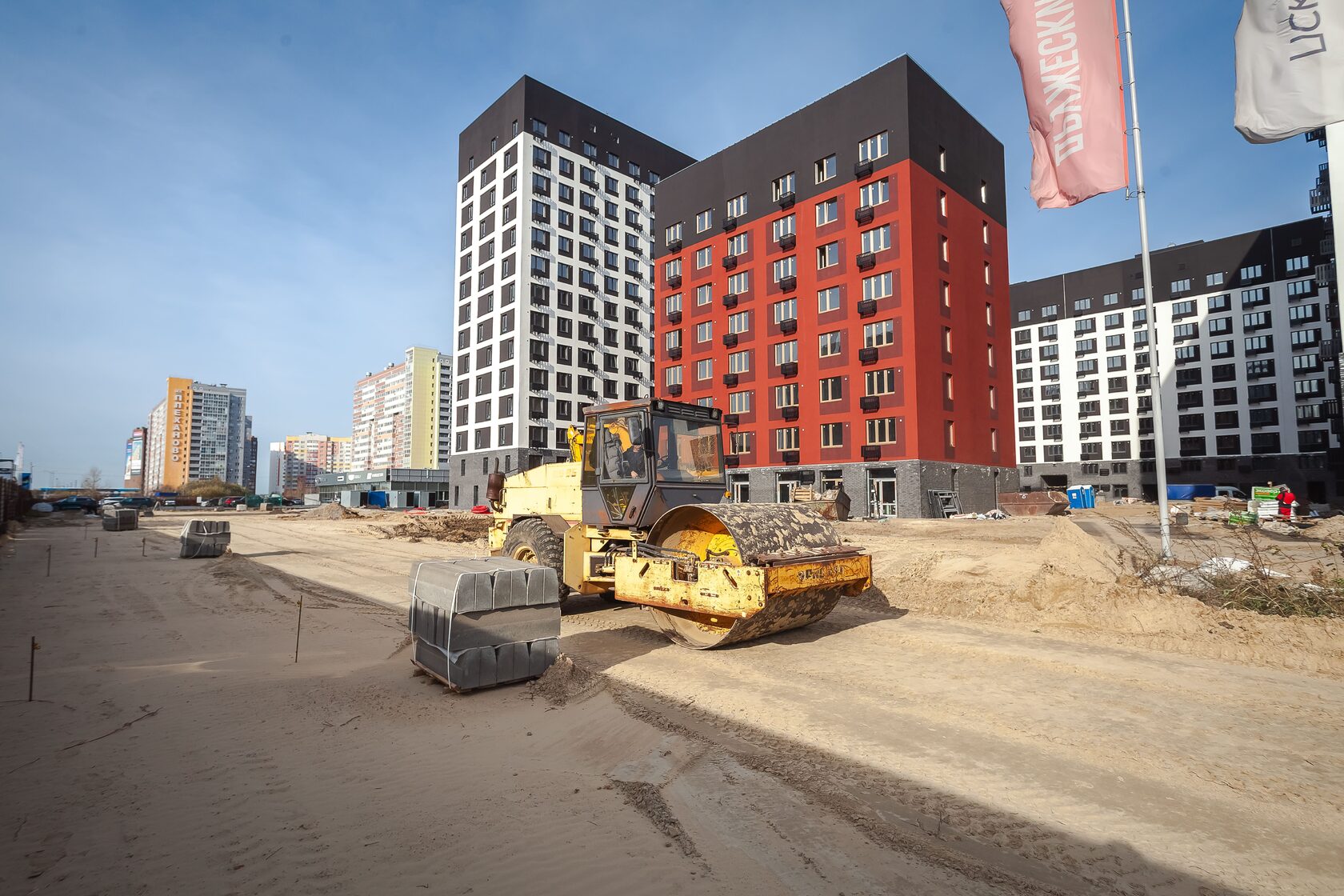 Вокруг ГП-1.1 продолжаются работы по благоустройству территории – уже заасфальтированы часть парковочных мест. С внешней стороны с 3 по 8 секции почти готова брусчатка.