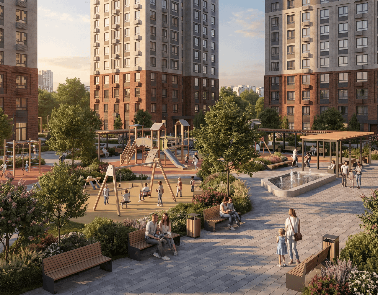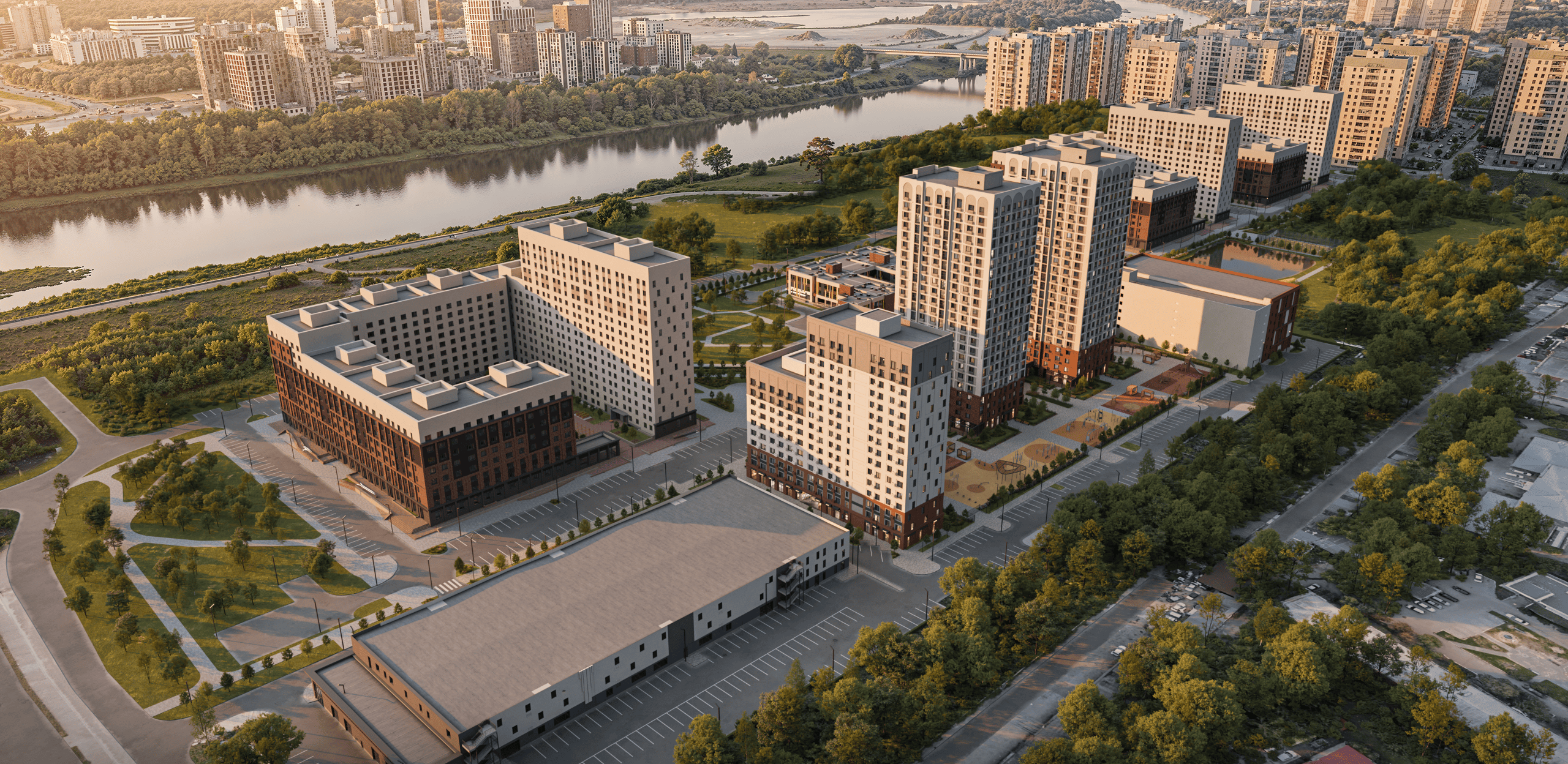 В паре минут от квартала формируется «новая набережная», и она не про туристические маршруты. Это пространство, где комфортно и интересно провести целый день: от утренней пробежки до семейного отдыха у реки.