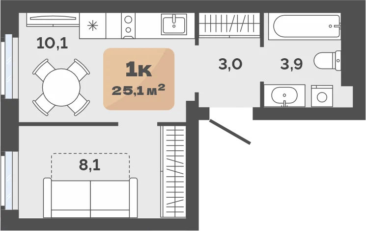 Стены выравниваем по общему уровню и штукатурим. На полу прокладываем слой звукоизоляции и цементно-песчаную стяжку, в мокрых зонах - дополнительный слой гидроизоляции.