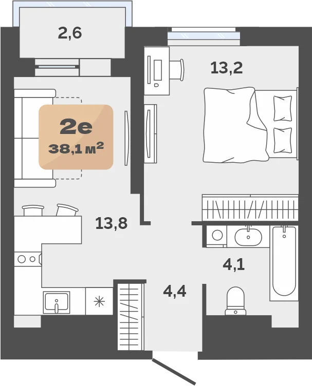 1-комнатная  36.85 м2
