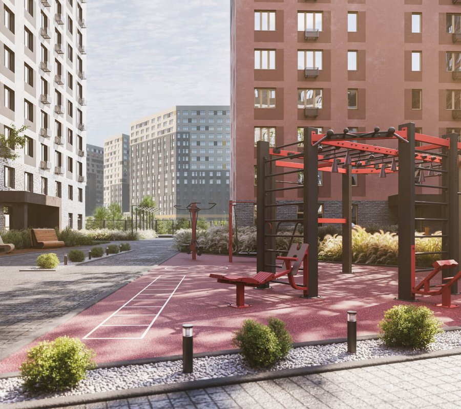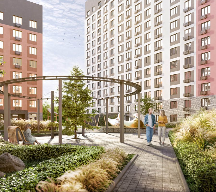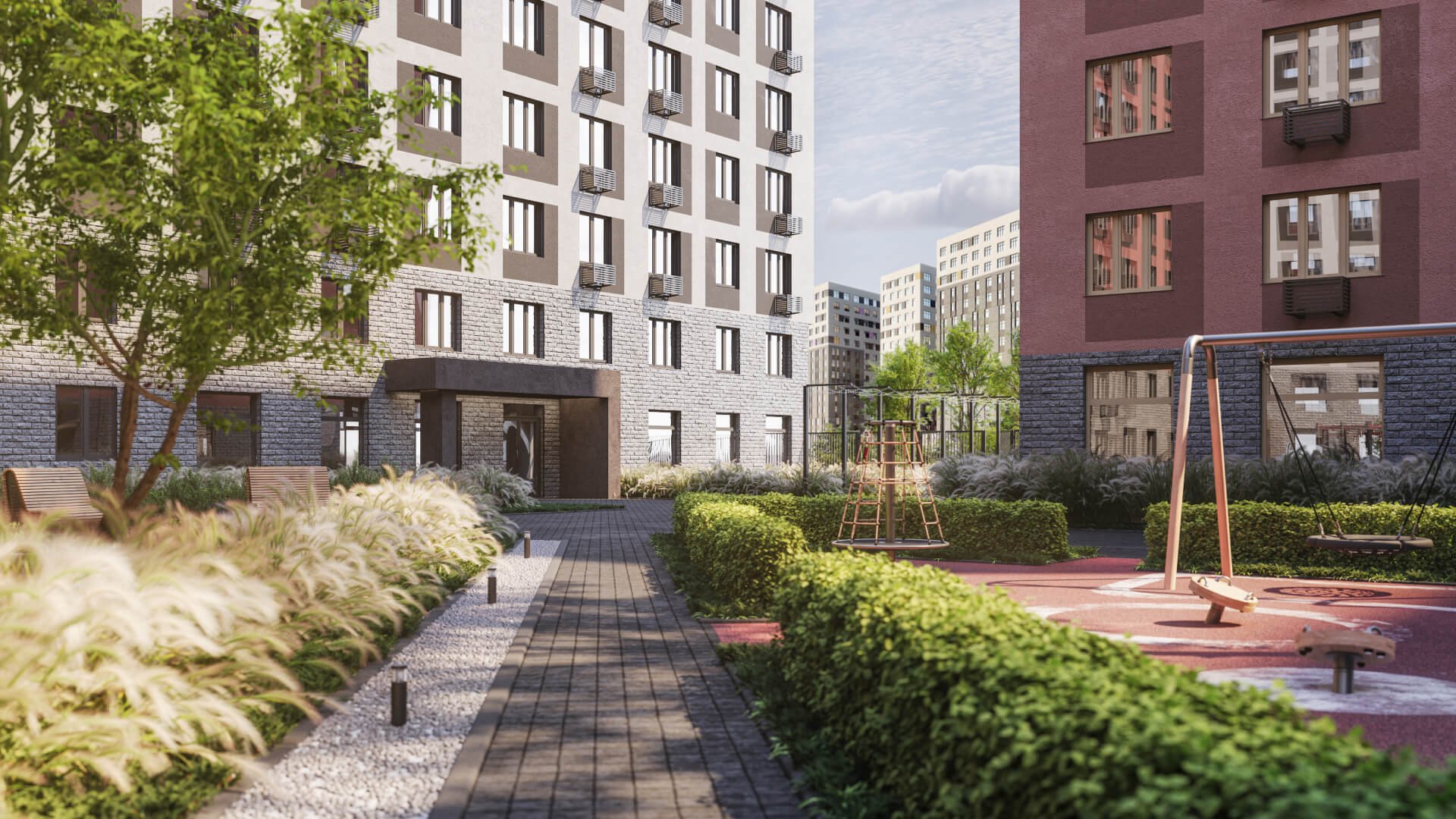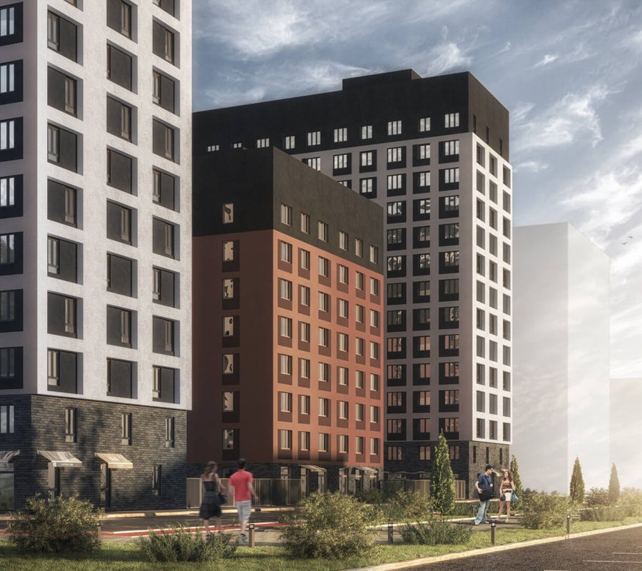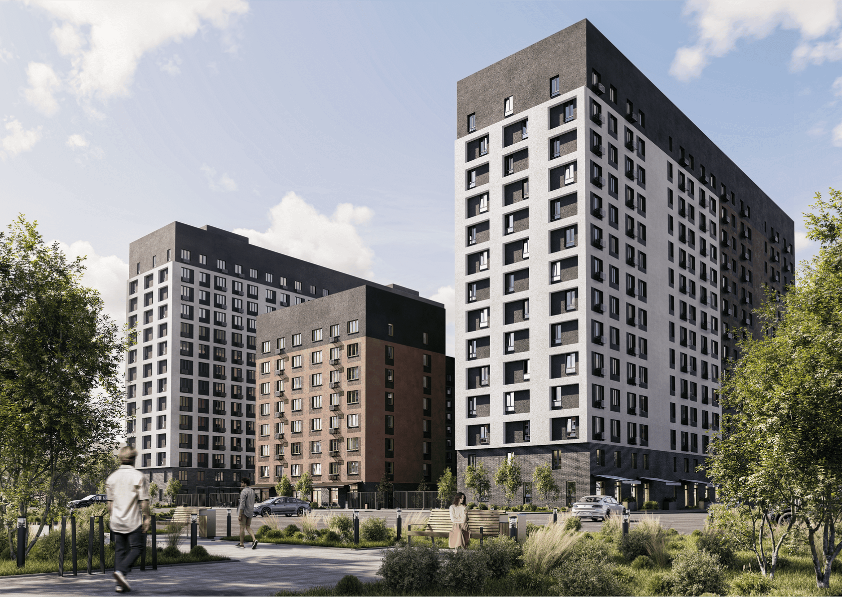 Два новых дома в знакомой локации. У них общий закрытый двор и магазины на первом. Рядом торговый центр, удобные развязки и современная школа.