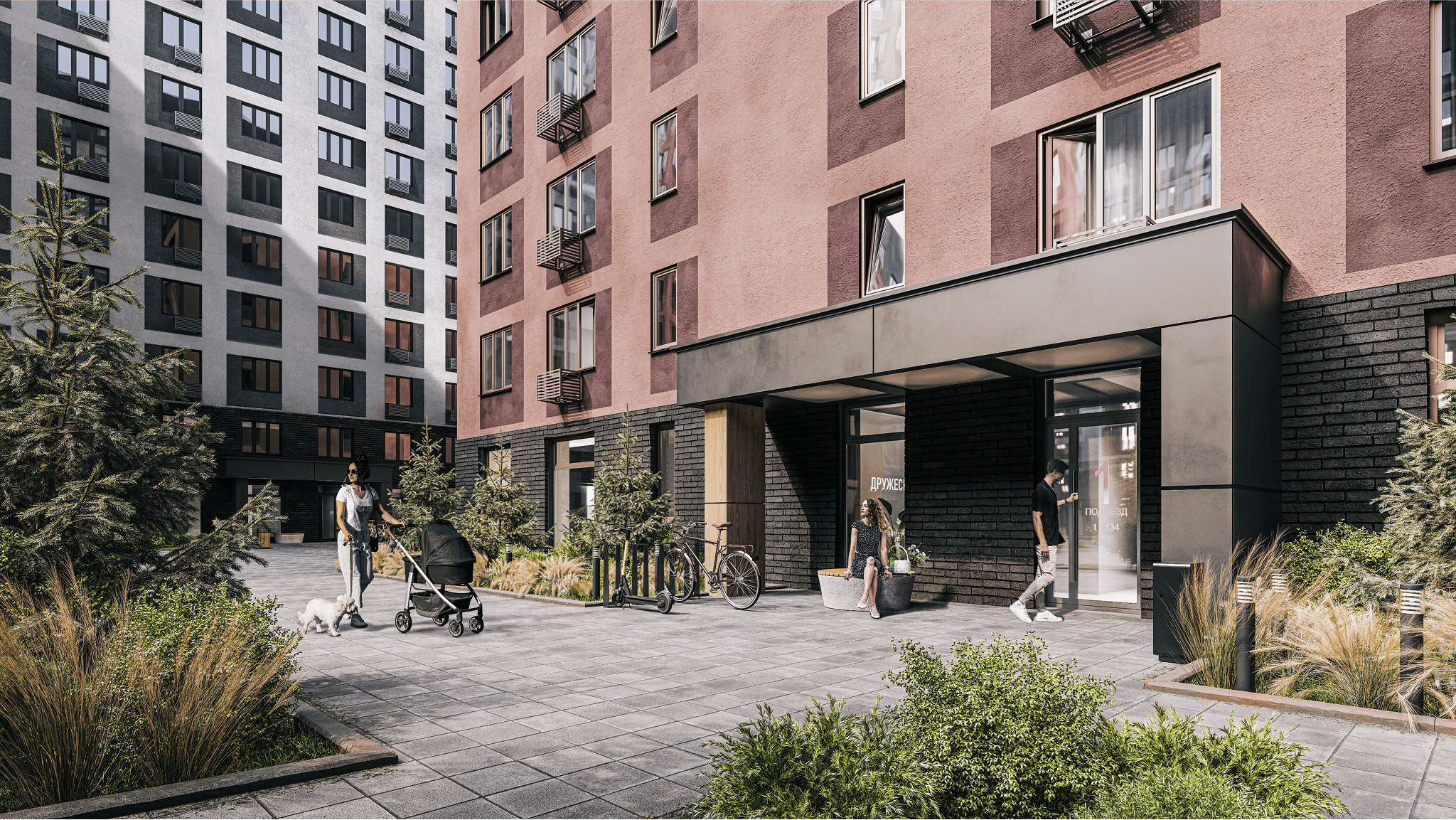 В пешей доступности уже работают детские сады, магазины и пункты выдачи. Если нужно выехать из района, то остановки тоже на месте — ближайшая в трёх минутах пешком.