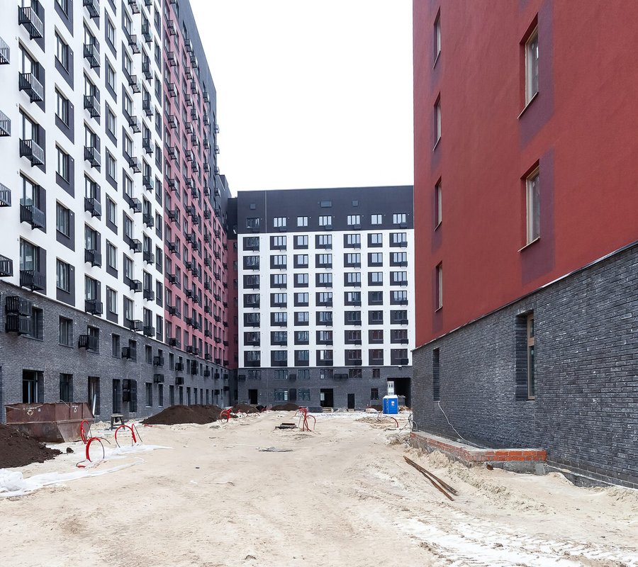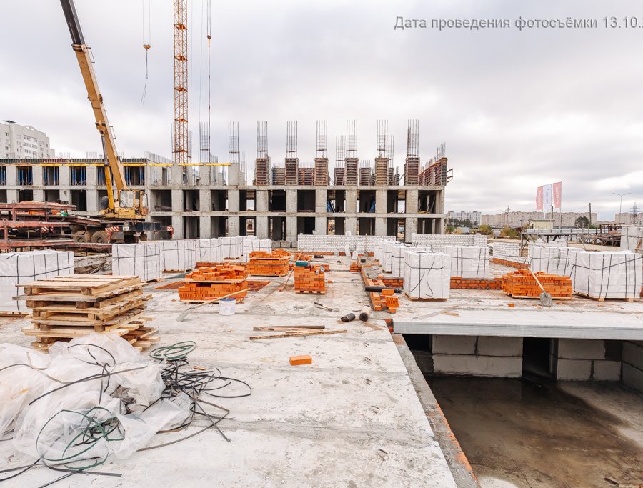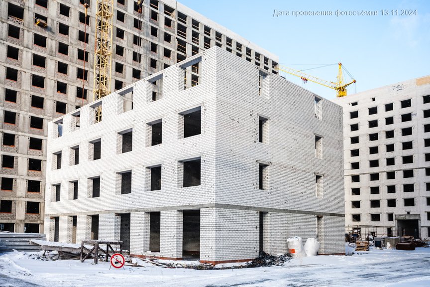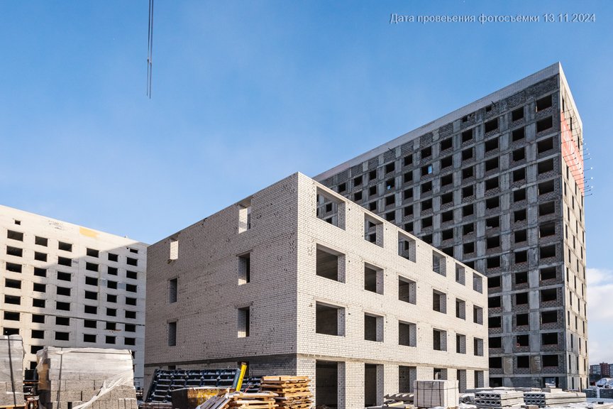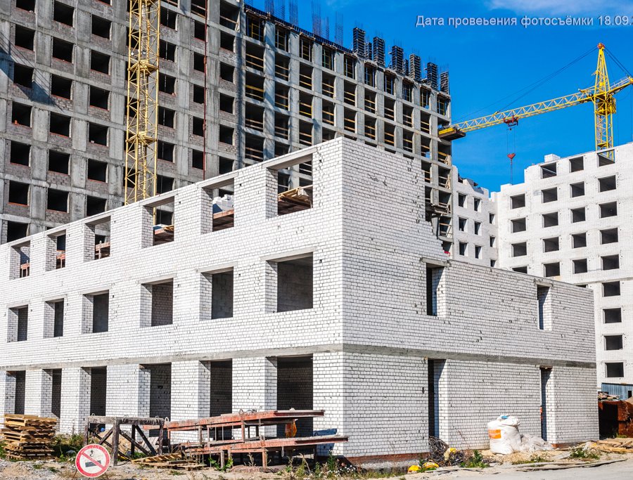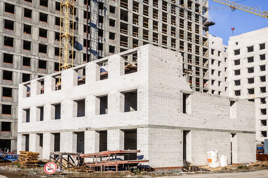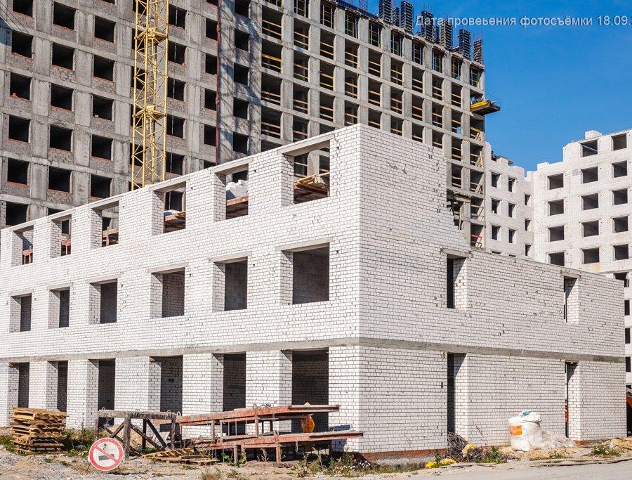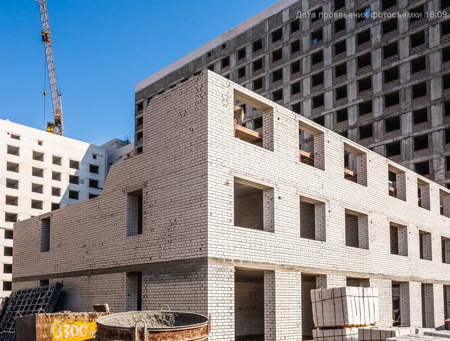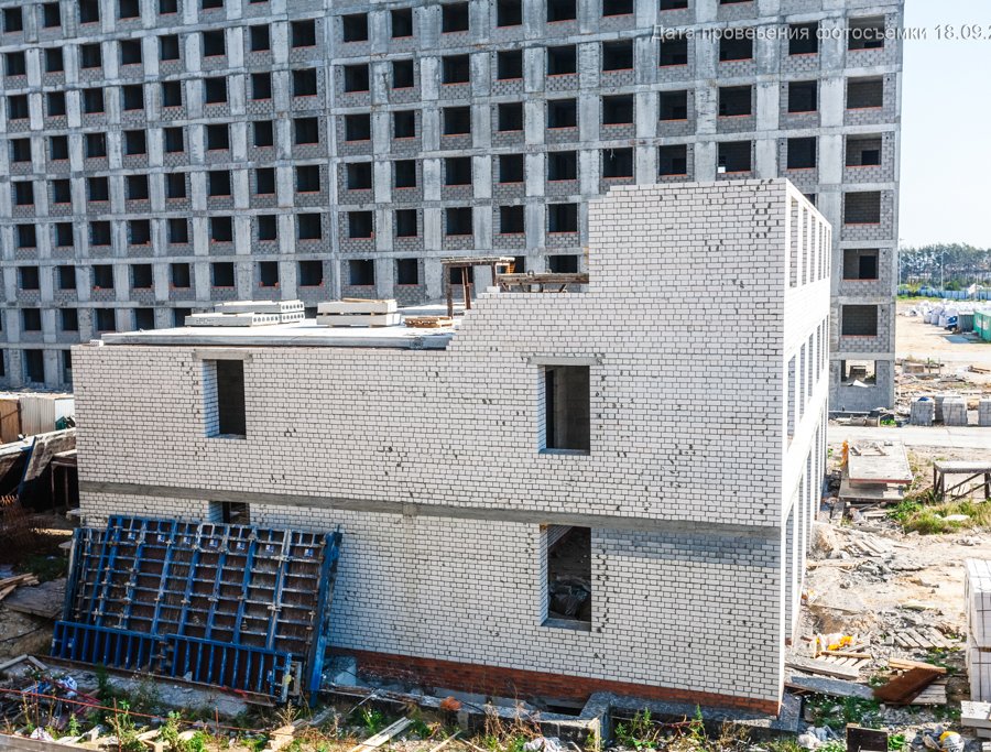 В ГП-1.1 завершили окрашивание фасада. Основные работы идут внутри здания. Вокруг дома начинаются работы по благоустройству территории – установлены бордюры, отсыпана часть территории, где позже будут парковочные места. В дом заводят городские теплосети.
