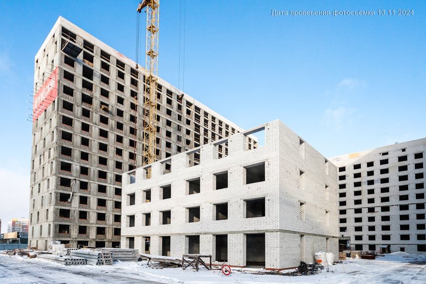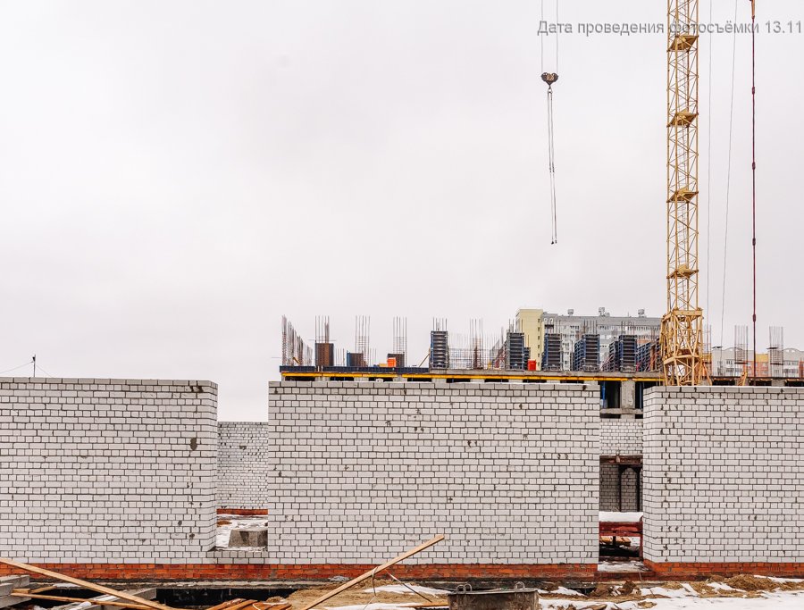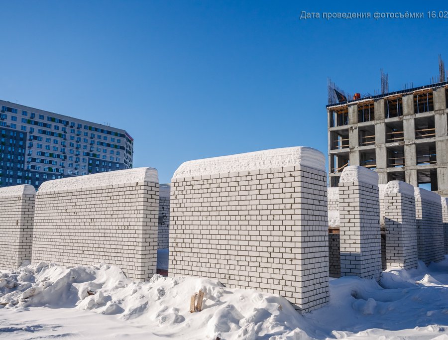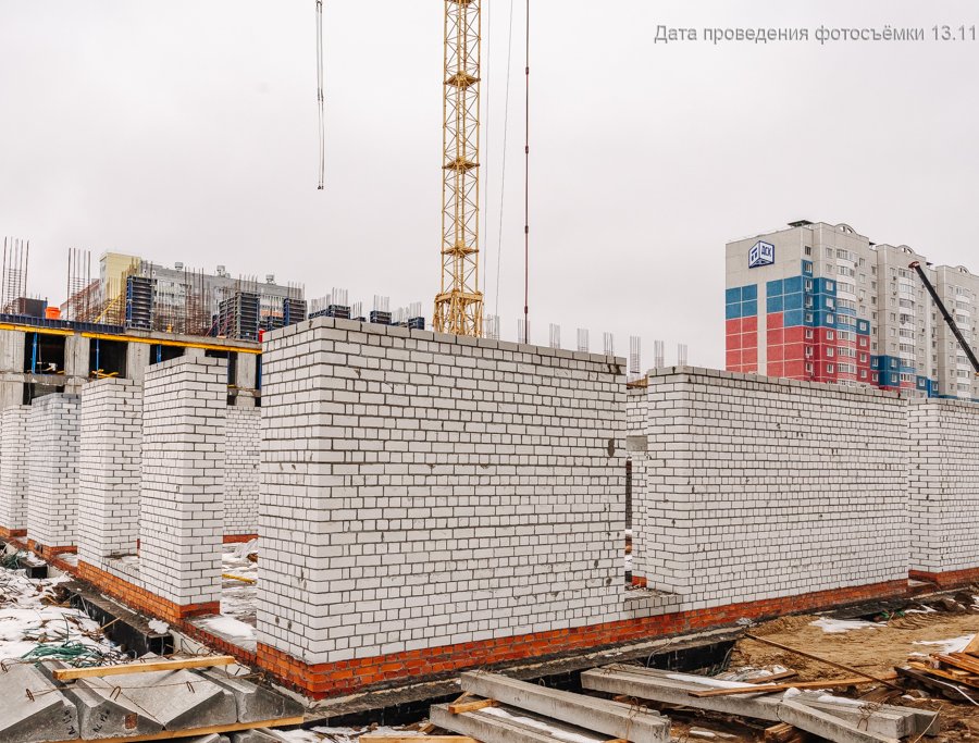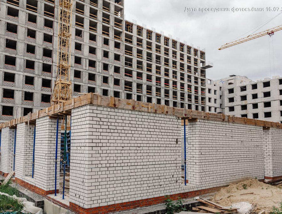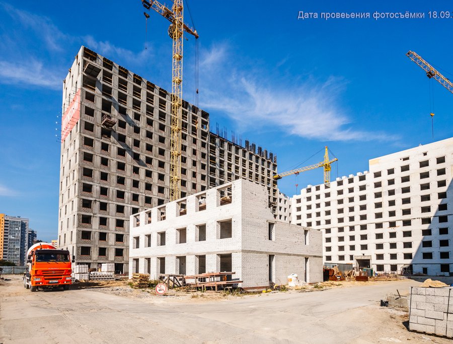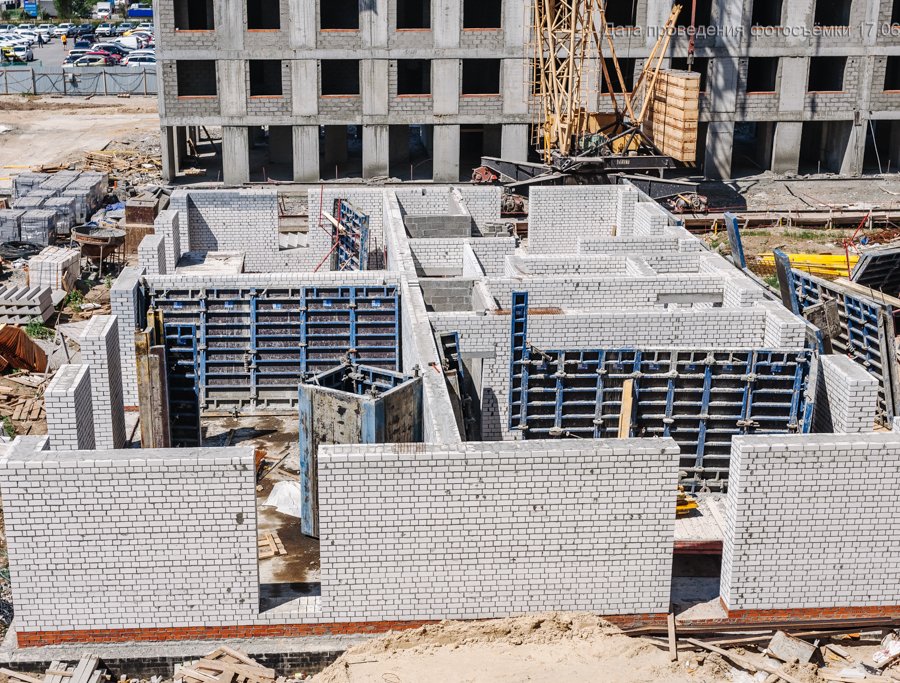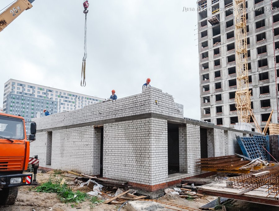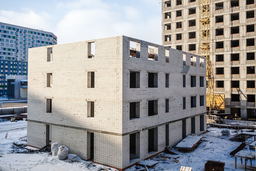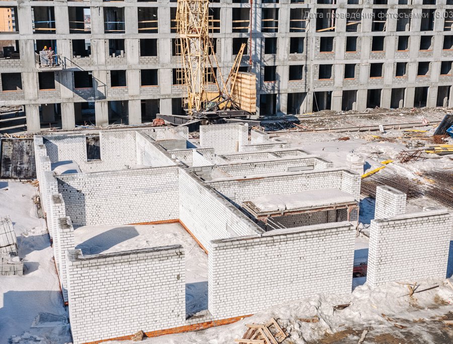 В ГП-1.1 завершили окрашивание фасада. Основные работы идут внутри здания. Вокруг дома начинаются работы по благоустройству территории – установлены бордюры, отсыпана часть территории, где позже будут парковочные места. В дом заводят городские теплосети.