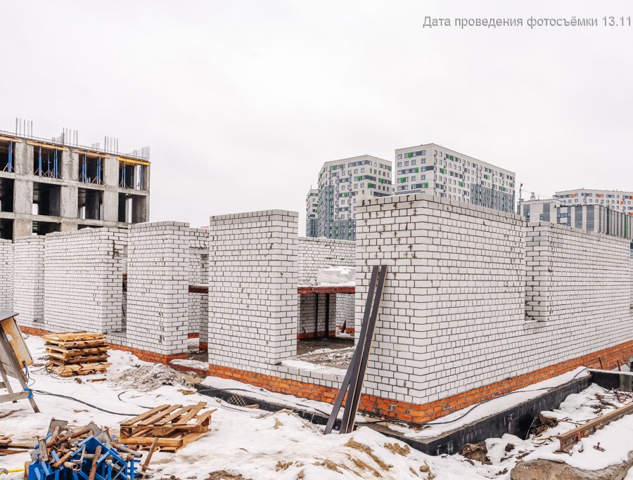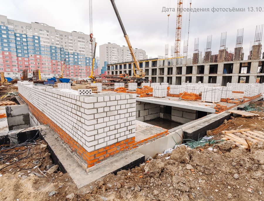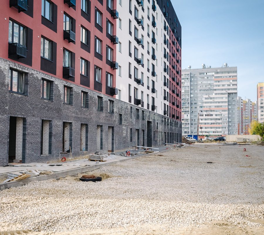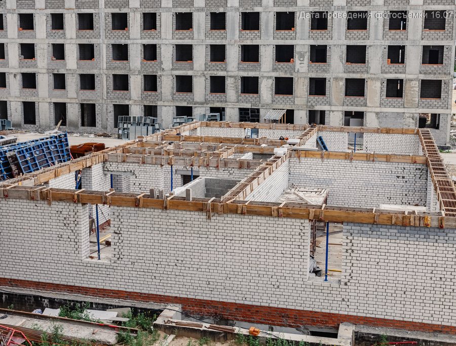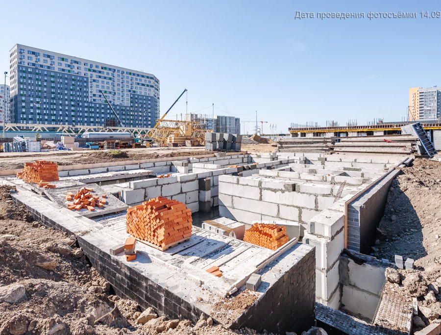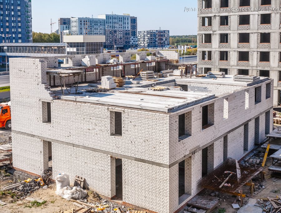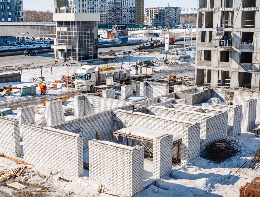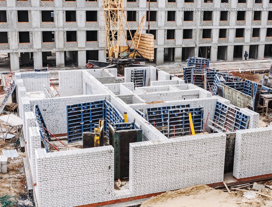 В ГП-1.1 завершили окрашивание фасада. Основные работы идут внутри здания. Вокруг дома начинаются работы по благоустройству территории – установлены бордюры, отсыпана часть территории, где позже будут парковочные места. В дом заводят городские теплосети.