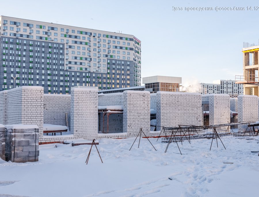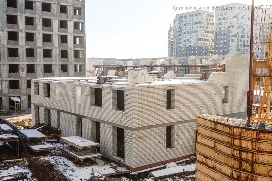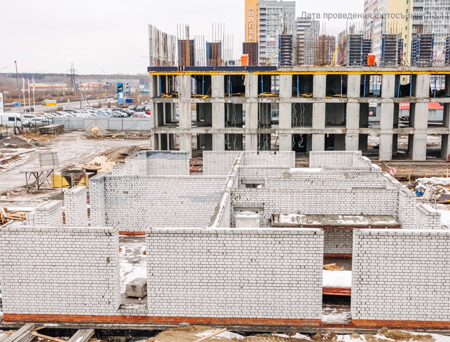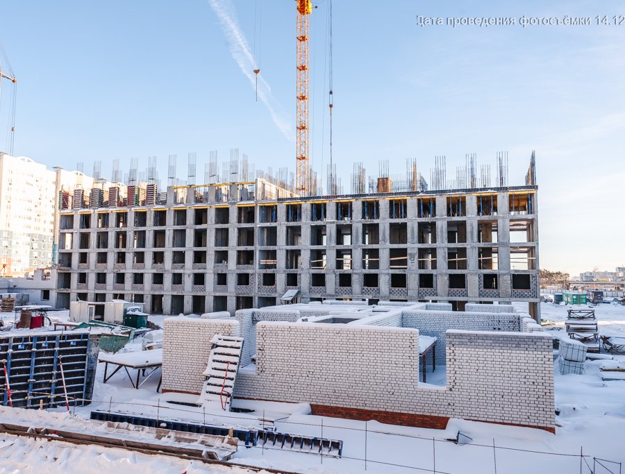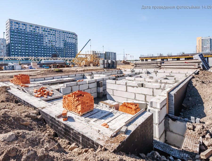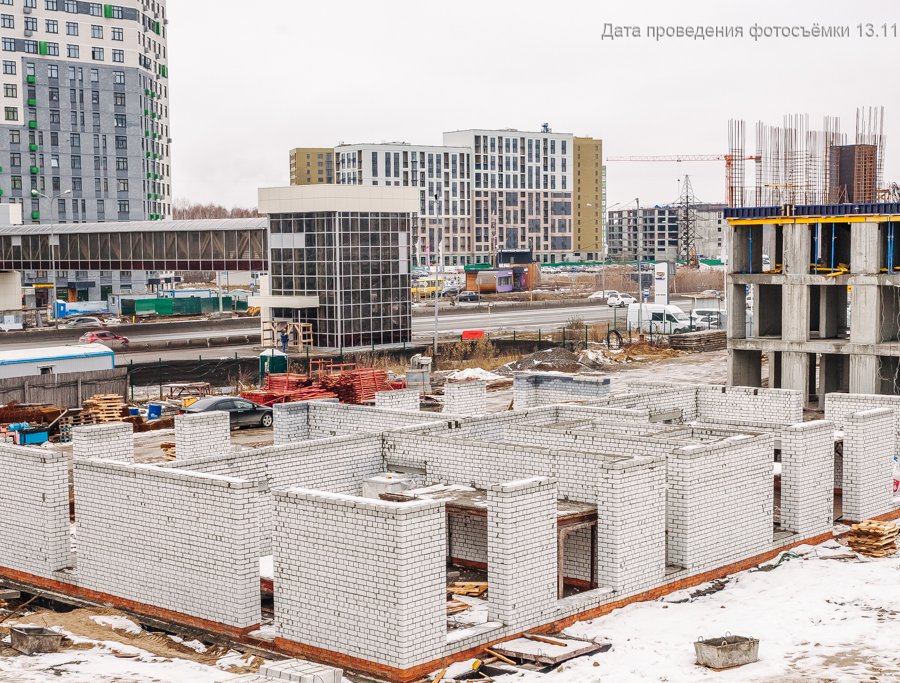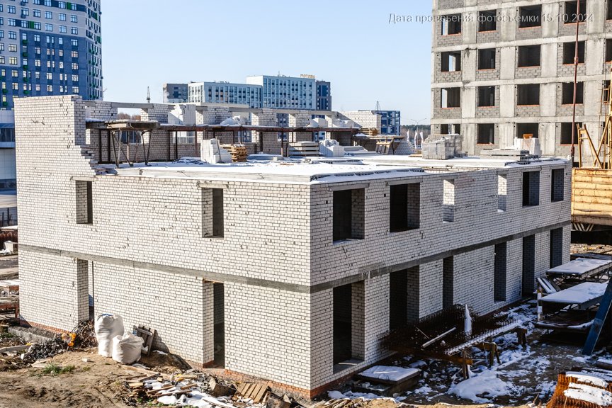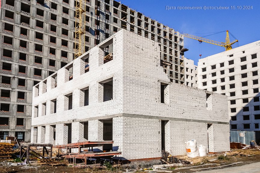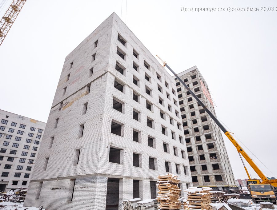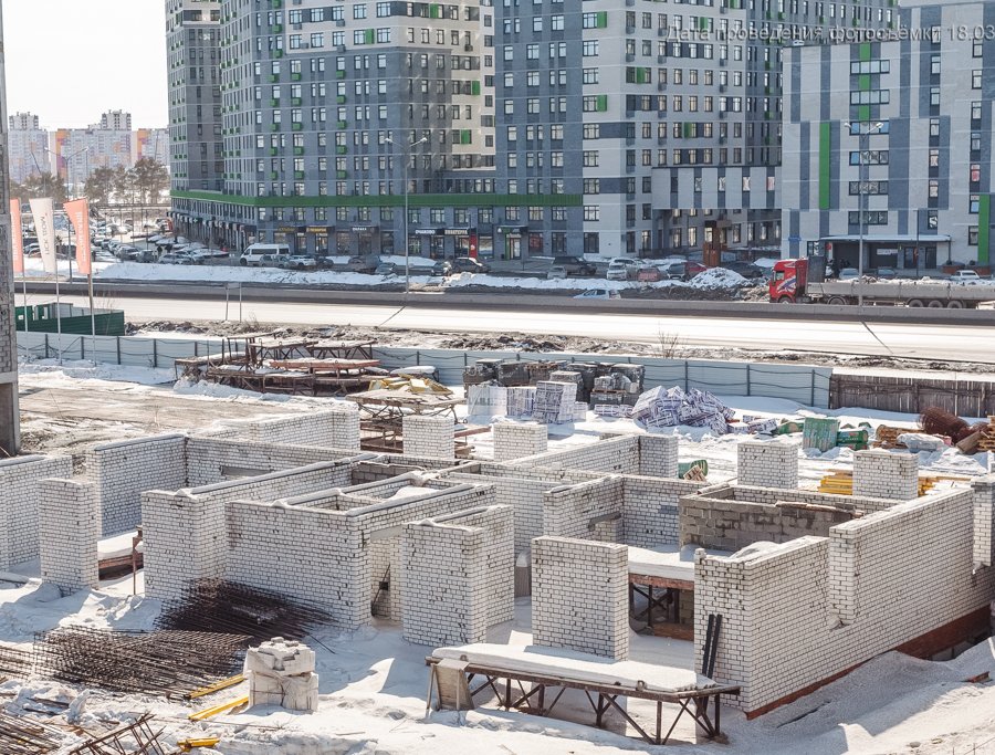 В ГП-1.1 завершили окрашивание фасада. Основные работы идут внутри здания. Вокруг дома начинаются работы по благоустройству территории – установлены бордюры, отсыпана часть территории, где позже будут парковочные места. В дом заводят городские теплосети.