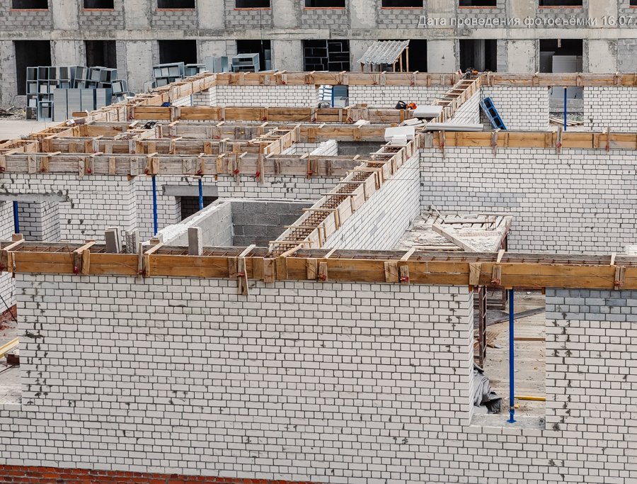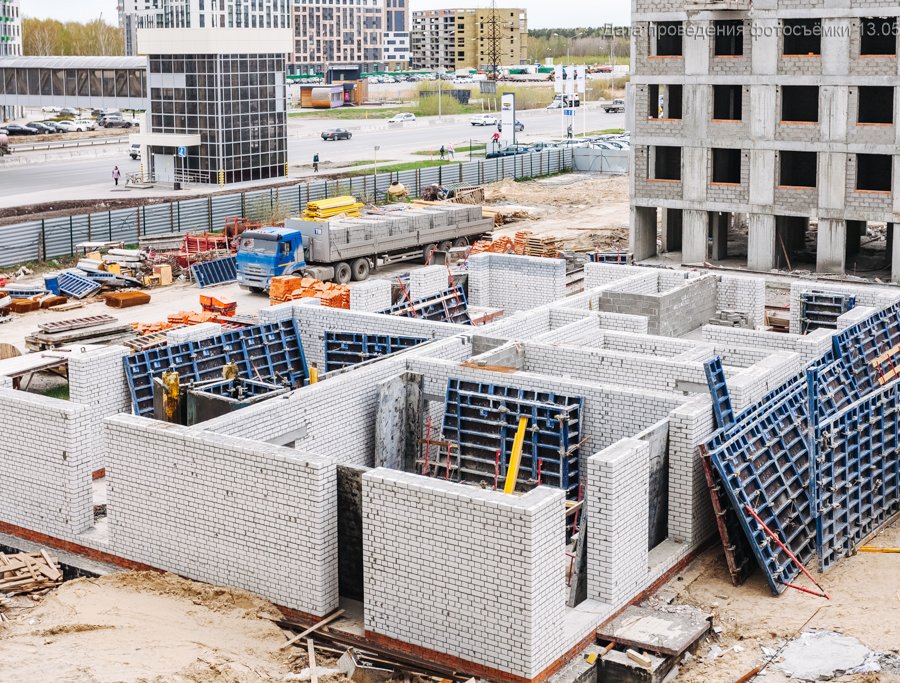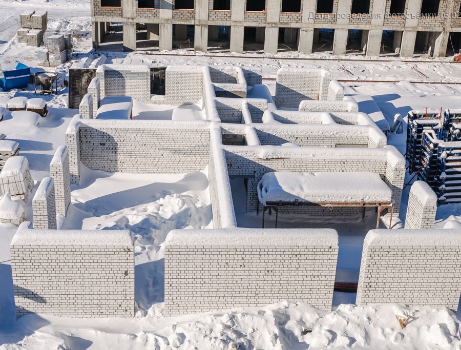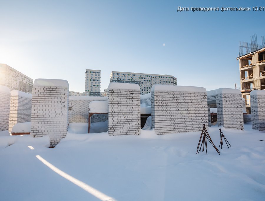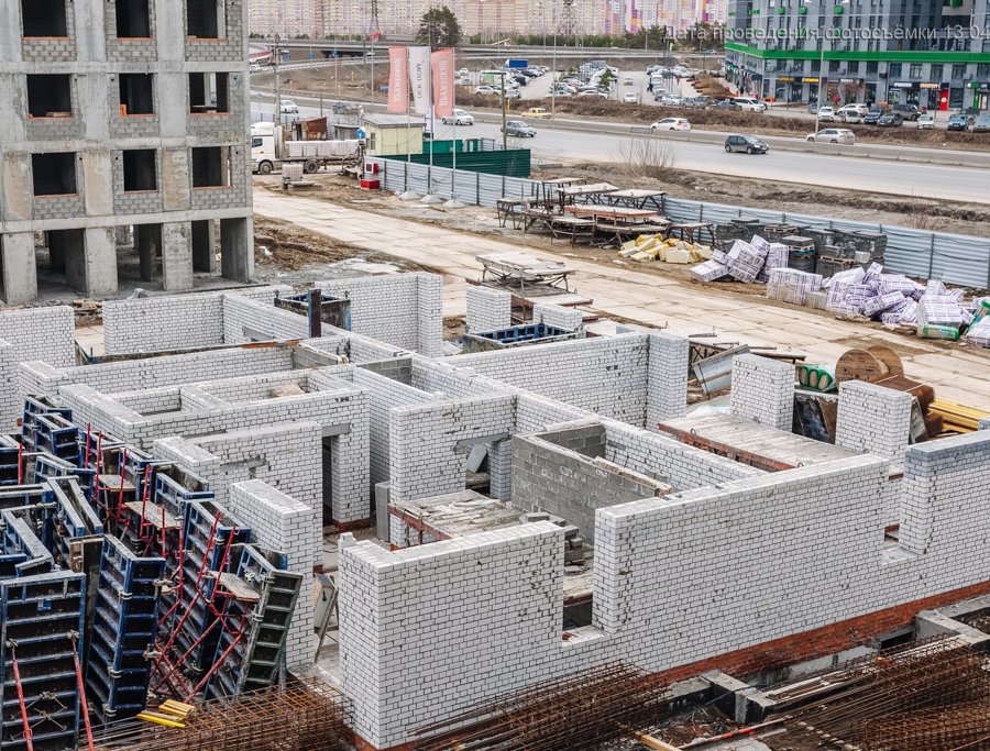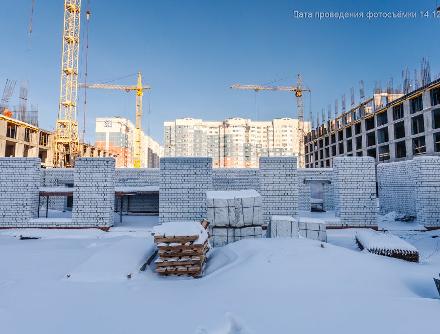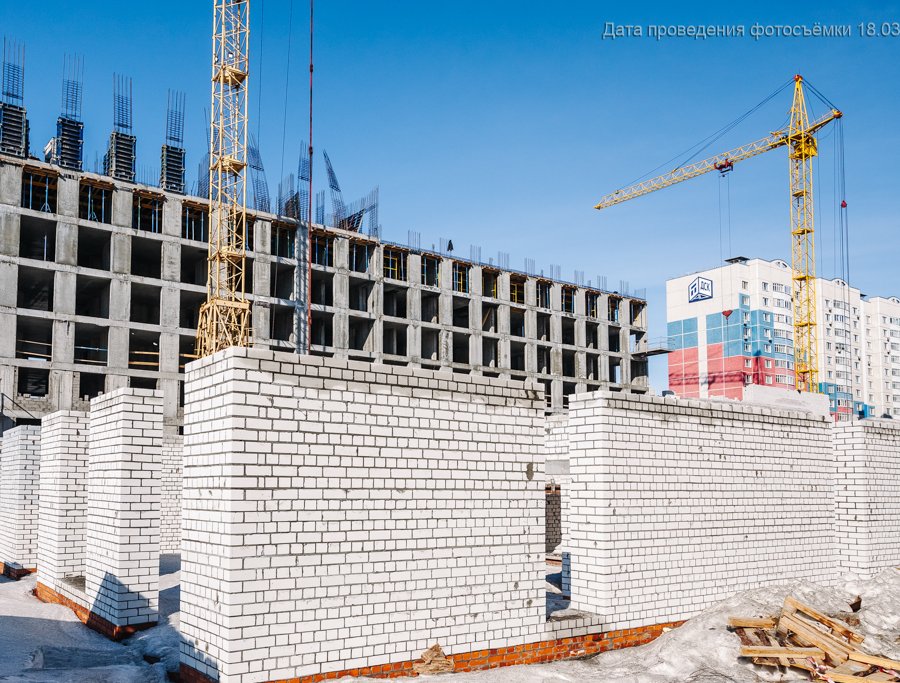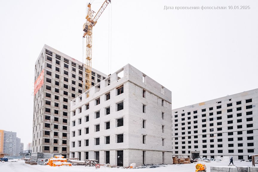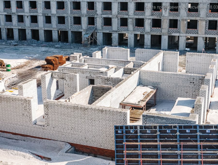 В ГП-1.1 завершили окрашивание фасада. Основные работы идут внутри здания. Вокруг дома начинаются работы по благоустройству территории – установлены бордюры, отсыпана часть территории, где позже будут парковочные места. В дом заводят городские теплосети.