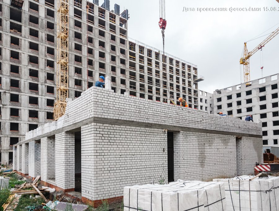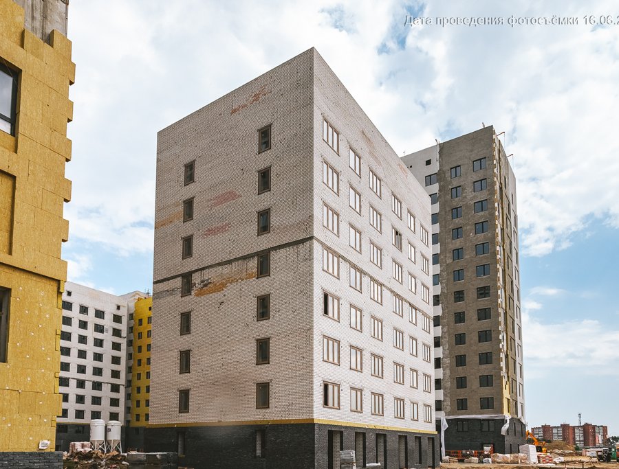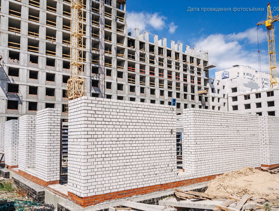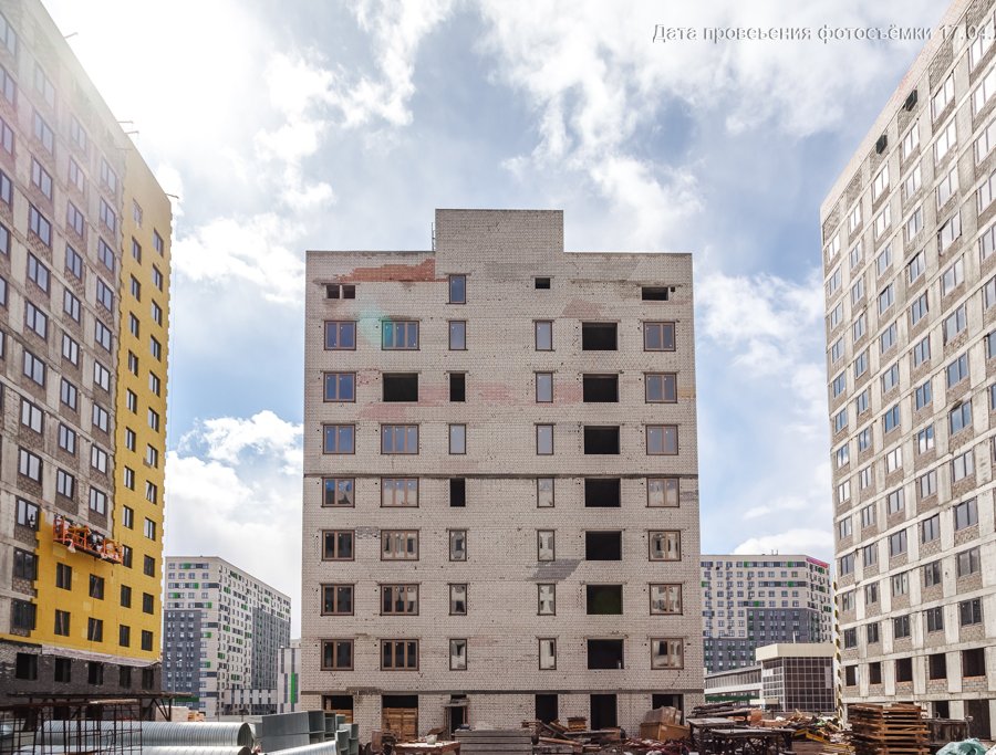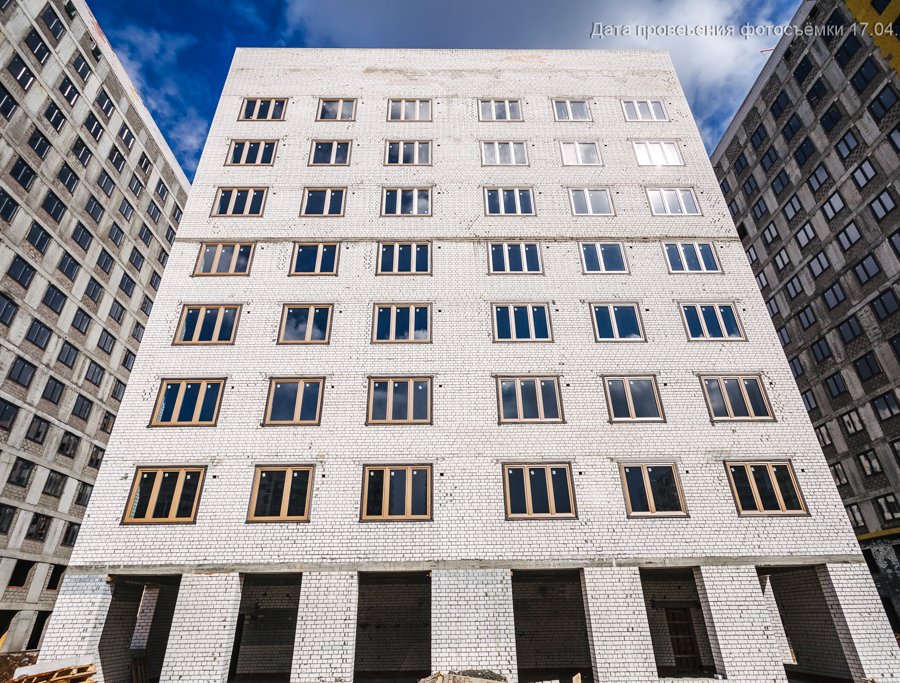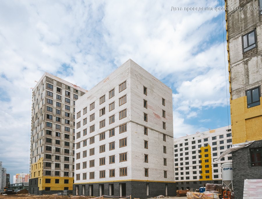 Входные двери установили в 6 секции. Подъезды уже приобритают предфинальный вид – оштукатурены стены, готова напольная плитка и стены в лифтовых холлах. На объекте продолжается работа над пожарной сигнализацией. Следующий этап – окрашивание стен. В квартирах специалисты занимаются подключением системы телеметрии. На 1 этажах идет монтаж алюминиевых рам витражного остекления.