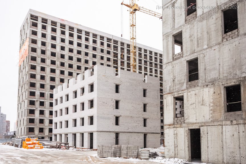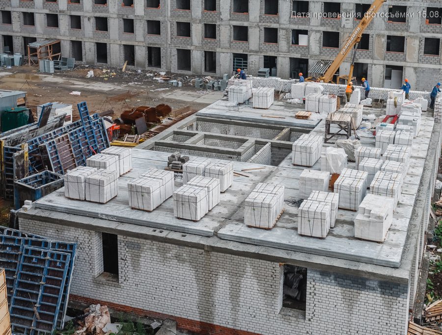 В ГП-1.2 идет укладка плитки в местах общего пользования, пожаробезопасные двери уже привезли для последующей установки. В квартирах подключена телеметрия. Осталось установить входную зверь, подоконники и оконные откосы. На 1 этаже идет монтаж алюминиевых рам витражного остекления.