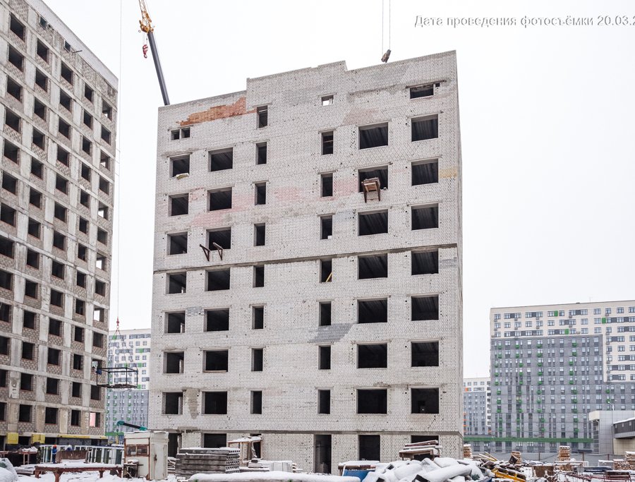 В марте подъезды уже начали окрашивать, пока только на первый слой в 1 и 2 секциях. Отделка 1 этажей идут в 1, 2 и 5 секциях, в 3 эти работы почти завершены.