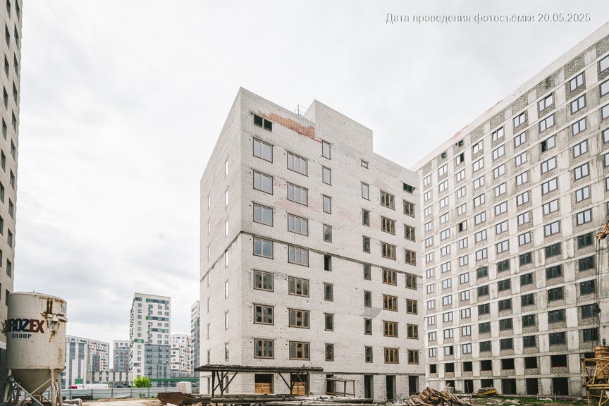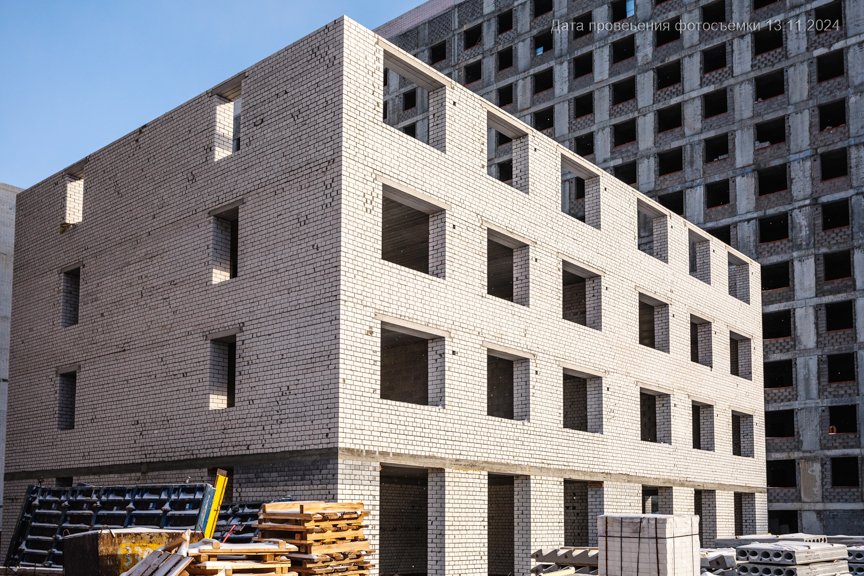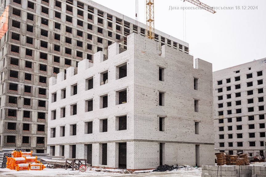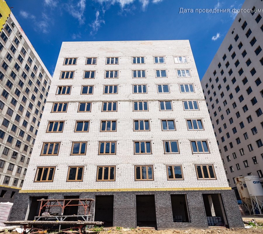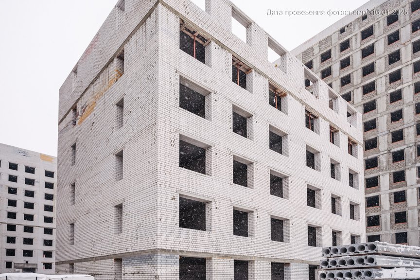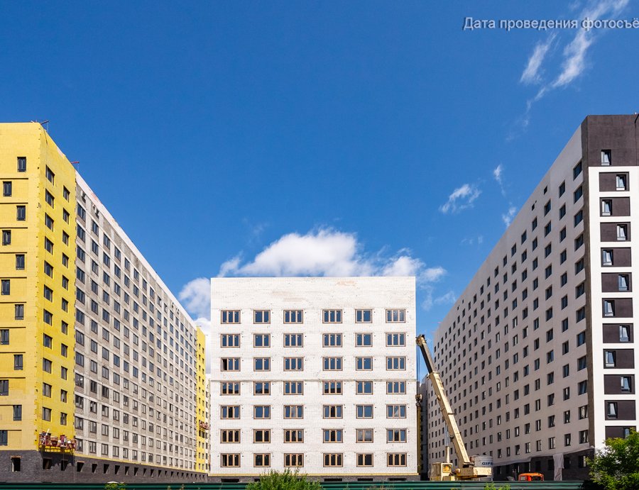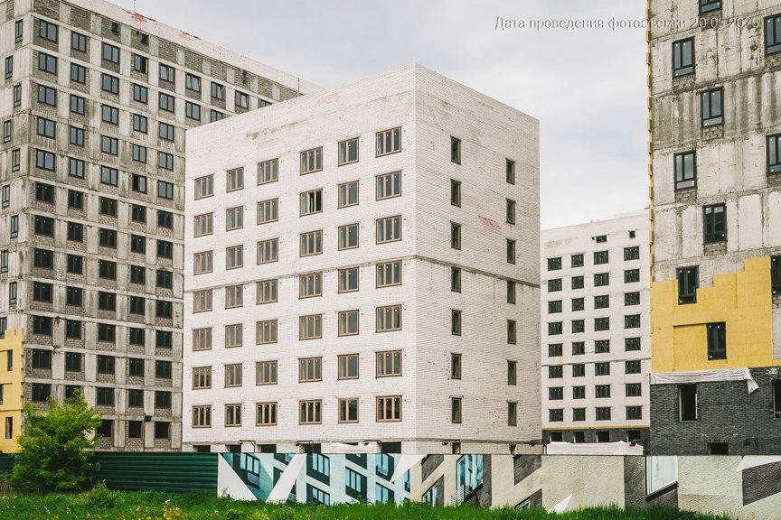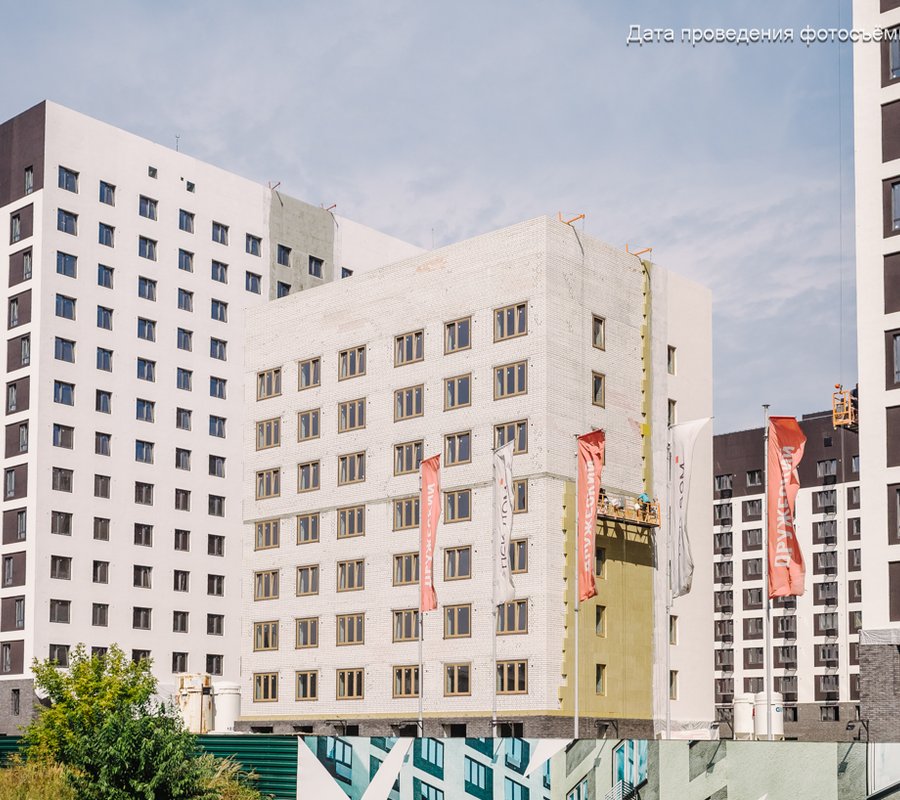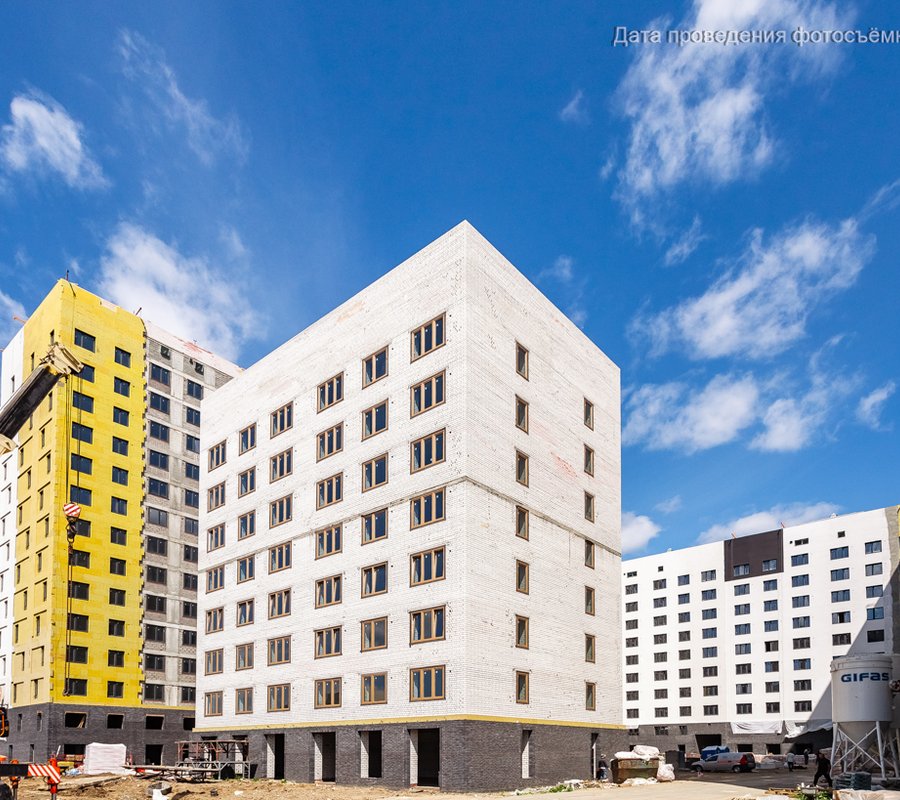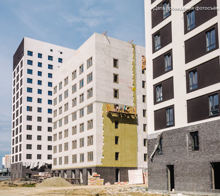 В ГП-1.2 за месяц завершили фасадные работы. На момент публикации фасад утеплен и покрашен полностью.