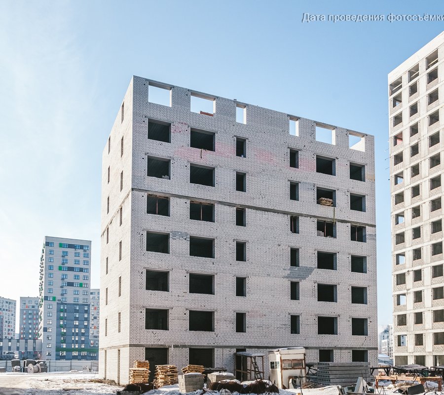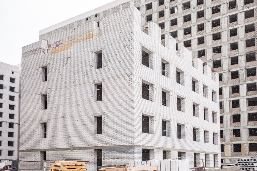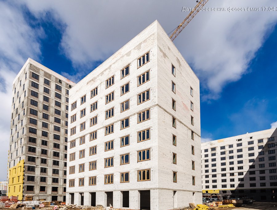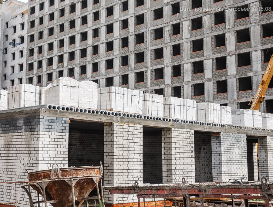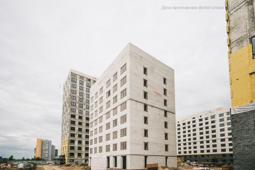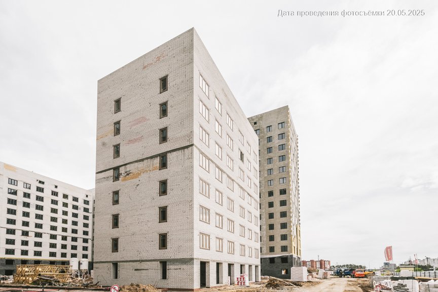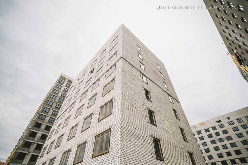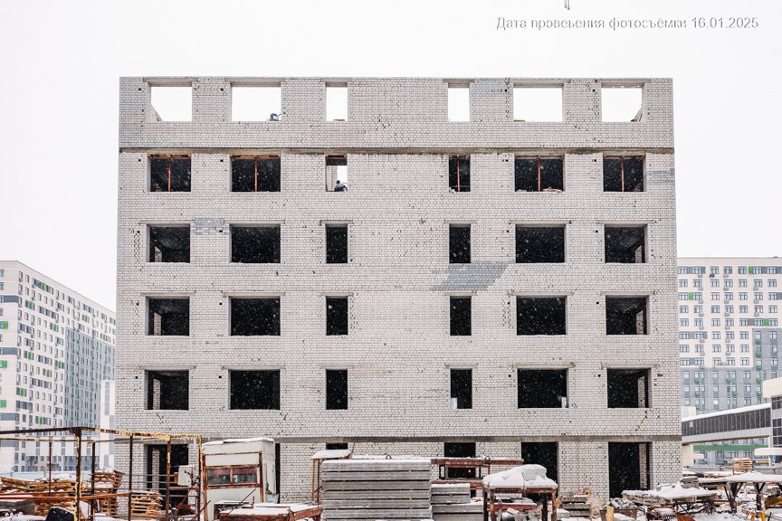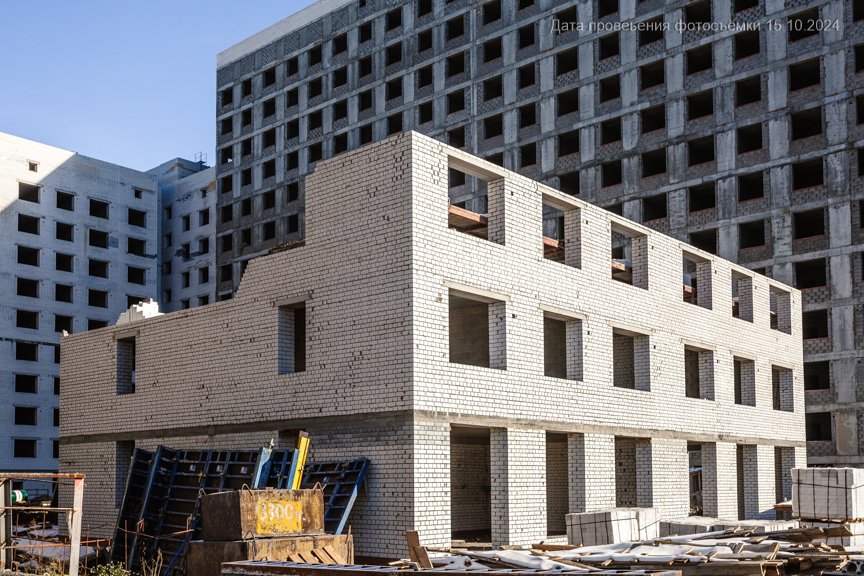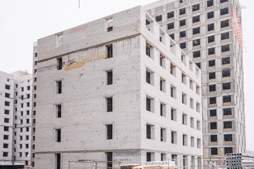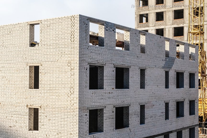 В ГП-1.2 за месяц завершили фасадные работы. На момент публикации фасад утеплен и покрашен полностью.