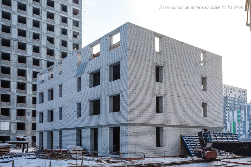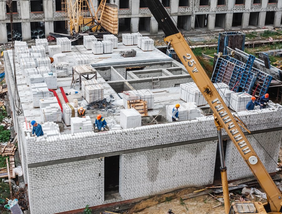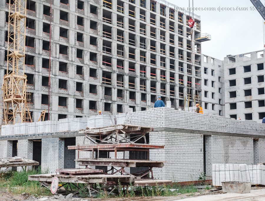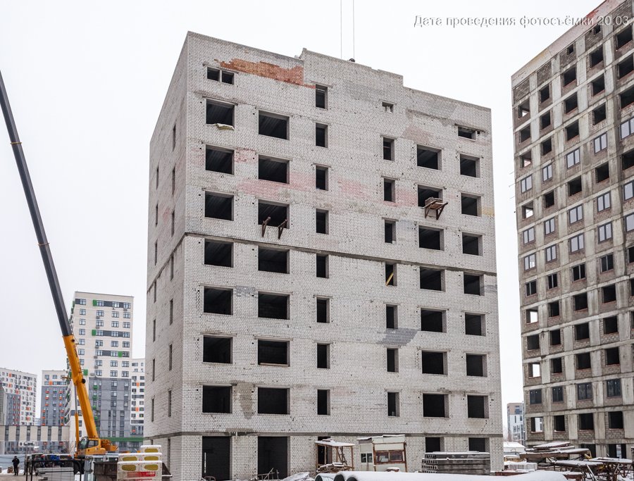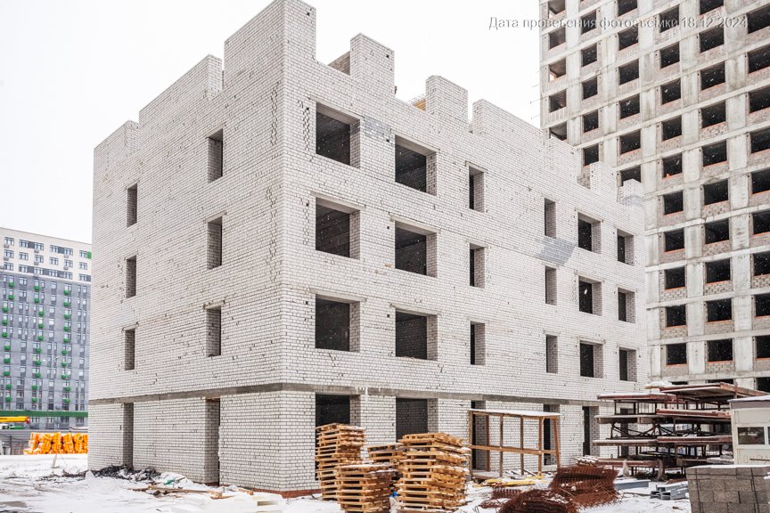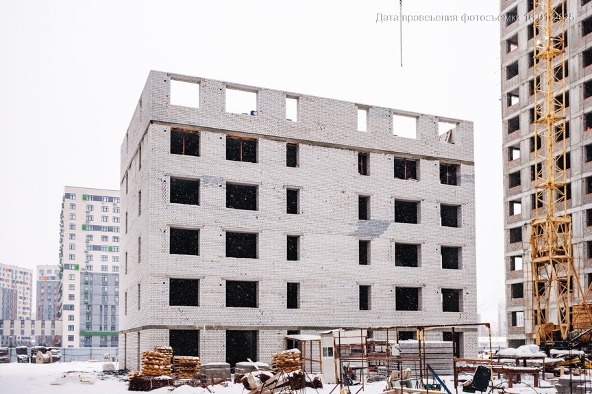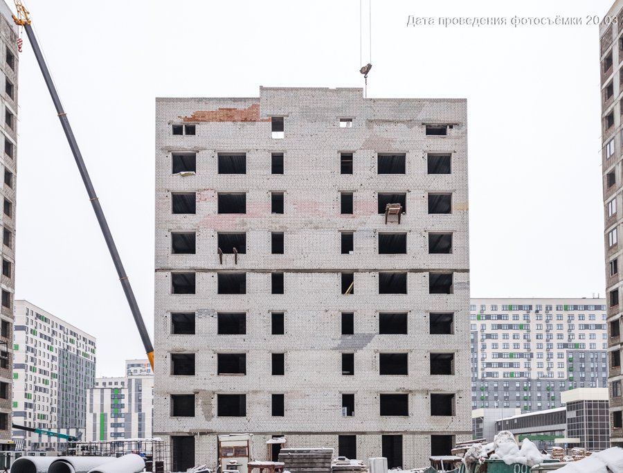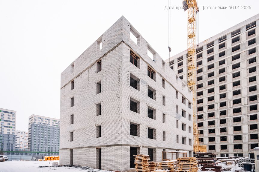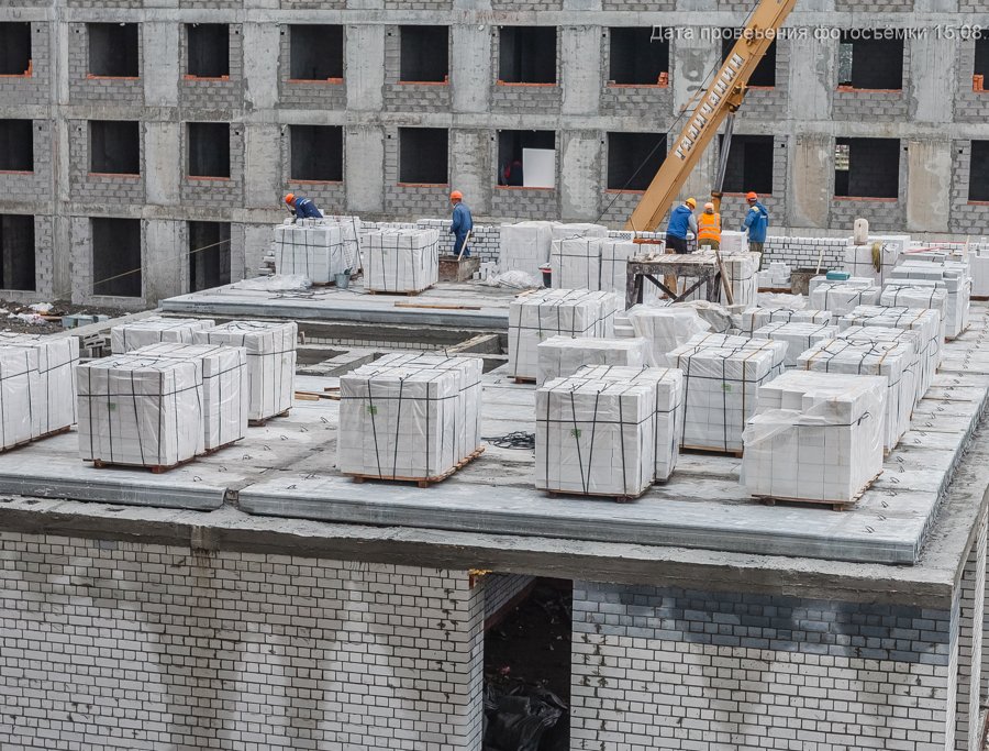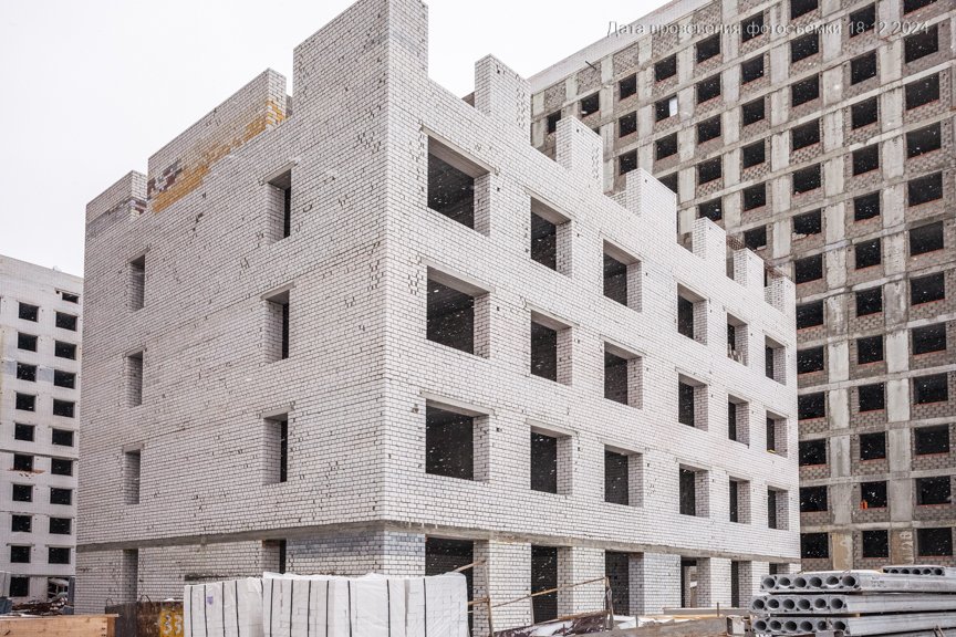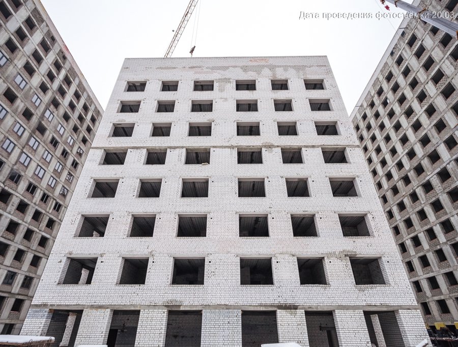 В ГП-1.2 за месяц завершили фасадные работы. На момент публикации фасад утеплен и покрашен полностью.