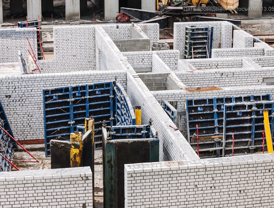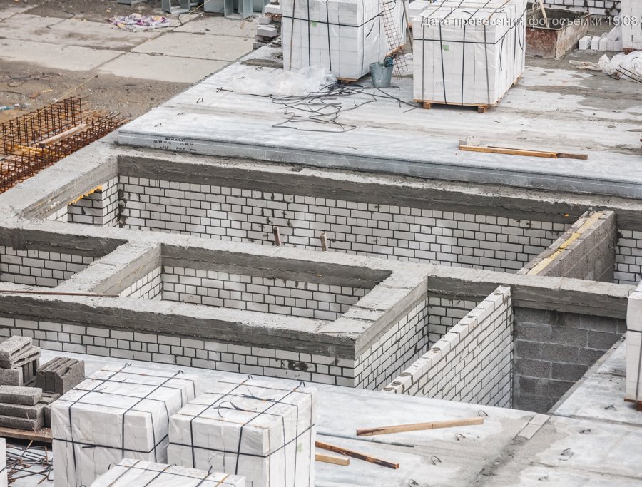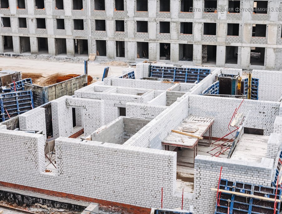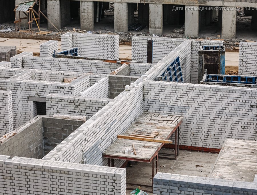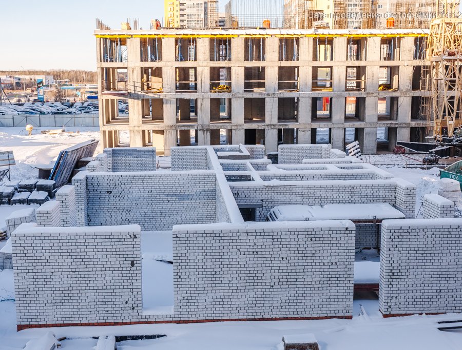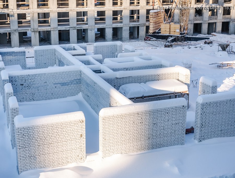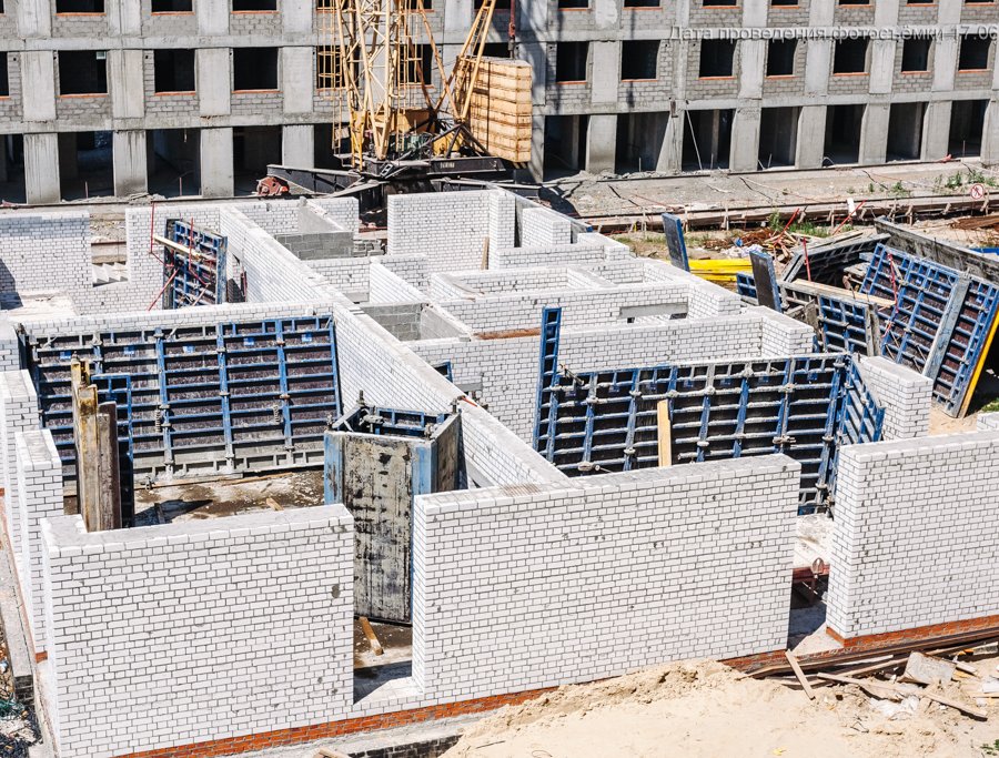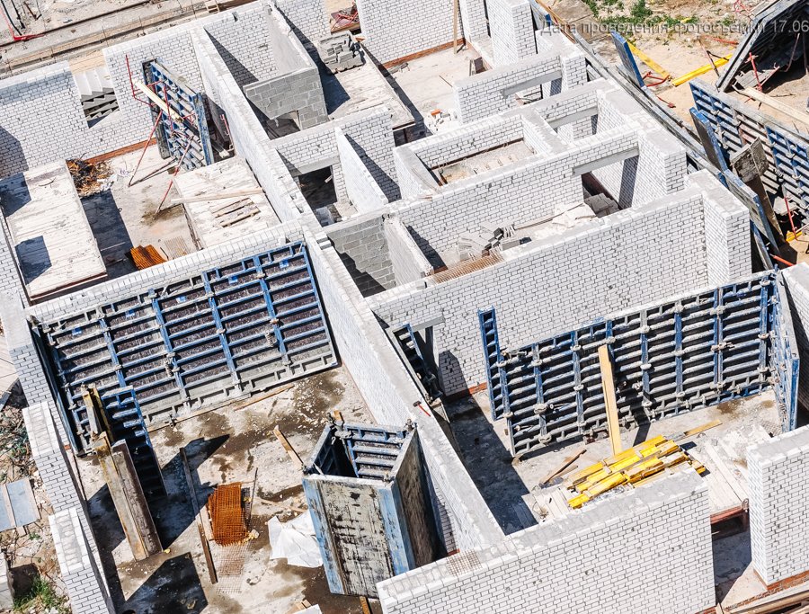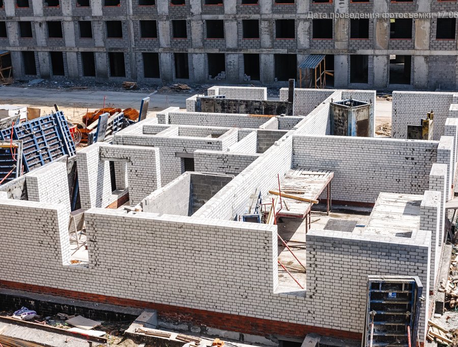В квартирах всех секций кроме 6 оштукатурены стены по маякам, завершена работа с электрикой – установлены розетки и выключатели, появились радиаторы, канализационные стояки, водоснабжение.Стяжка пола выполнена в квартирах и местах общего пользования на всех этажах с 1 по 4 секции. Работы начались в 5 секции.