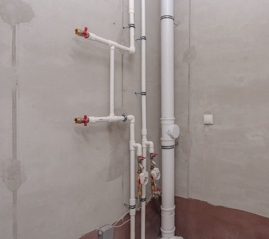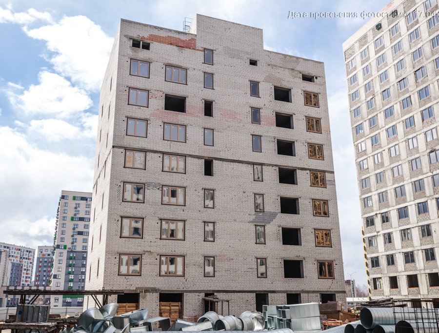 В квартирах оштукатурены стены по маякам, завершены электромонтажные работы – на своих местах уже розетки и выключатели. Отопление, сантехнические стояки и водопровод готовы на всех этажах, кроме 1 и 2. Следующий этап – стяжка пола.