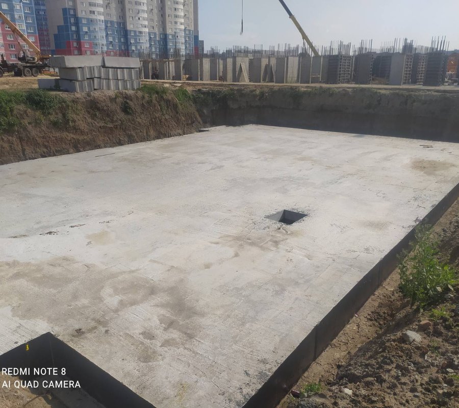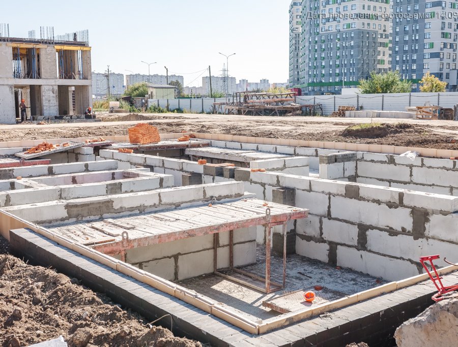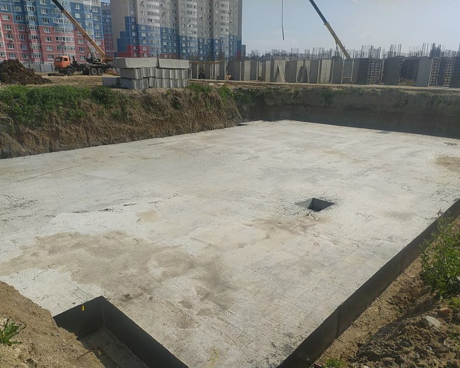Во дворе залили бетонные основы элементов благоустройства и входных групп.