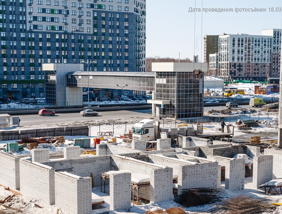 На ГП-1.1 закончили монтировать архитектурную подсветку с внешней стороны здания. Сейчас там идет монтаж козырьков коммерческих помещений.