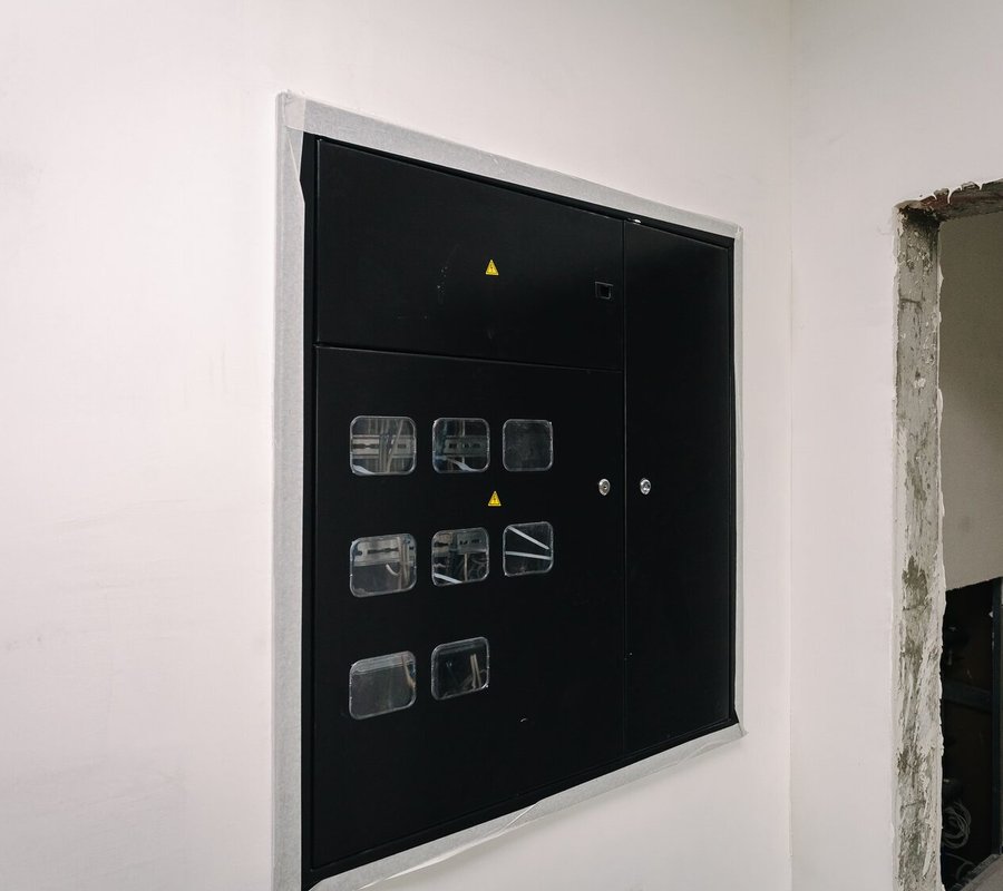 Делаем разводку электричества и ставим розетки с выключателями. Счётчики на тепло, электричество и воду ставим самостоятельно.