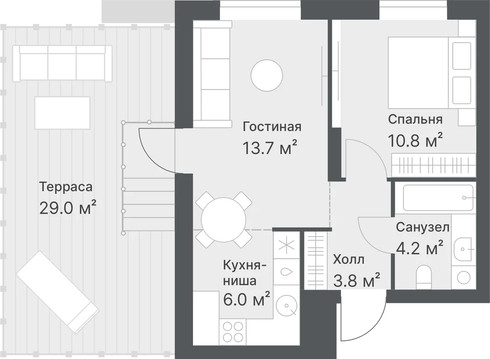 Стены выравниваем по общему уровню и штукатурим. На полу прокладываем слой звукоизоляции и цементно-песчаную стяжку, в мокрых зонах - дополнительный слой гидроизоляции.