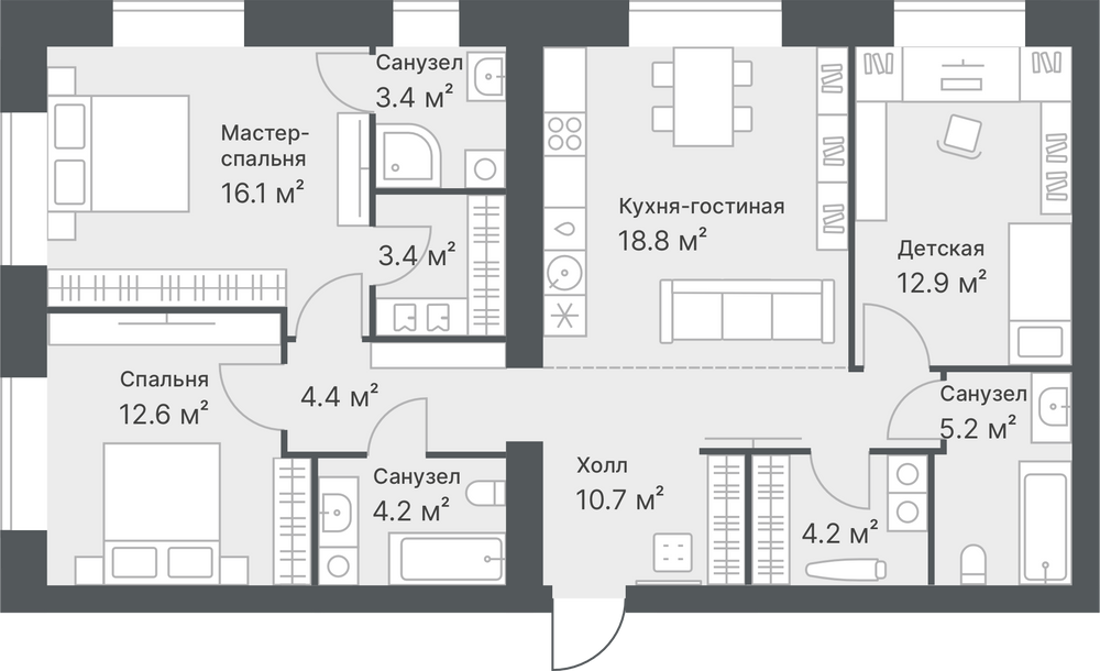 3-комнатная