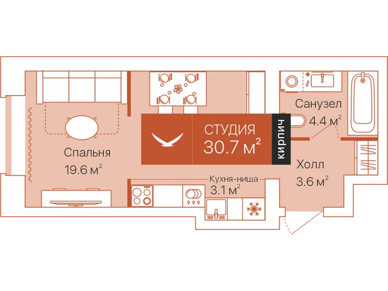 Площадь от 30,7 м²