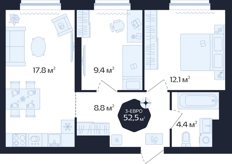 Площадь от 52 м²