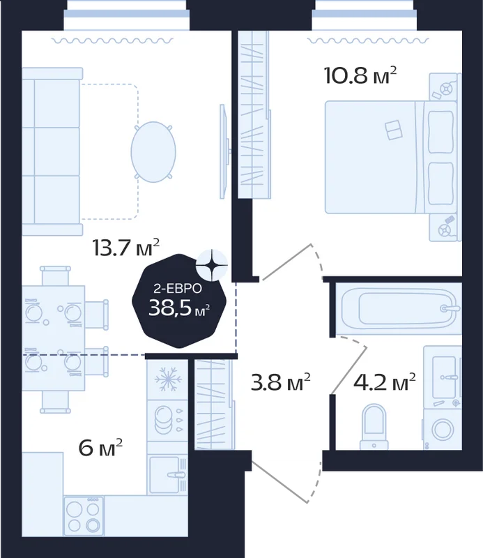 Площадь от 38,2 м²