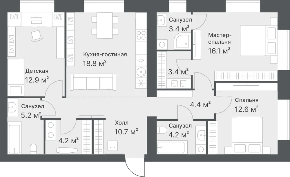 Покупая квартиру с помощью семейной ипотеки, получите до 20% от стоимости баллами программы лояльности «Ещё бонус». Потратьте их на ремонт, технику и мебель.