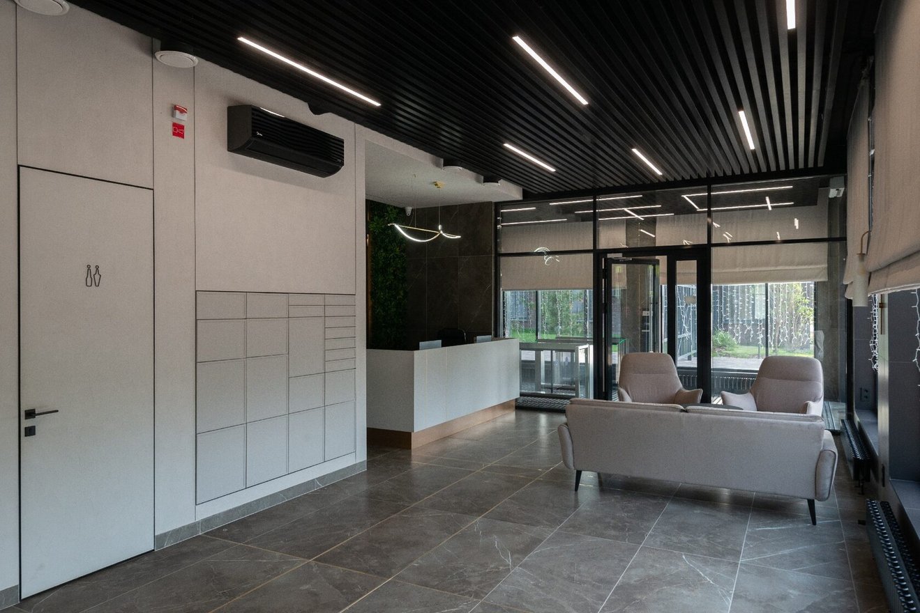 В случае с Да.Кварталом «Централь», лобби повторяет концепцию самого проекта: оно сдержанное и утонченное. Цветовая гамма совпадает с дизайном общедомового пространства, холлов первого этажа и фасадом здания.
